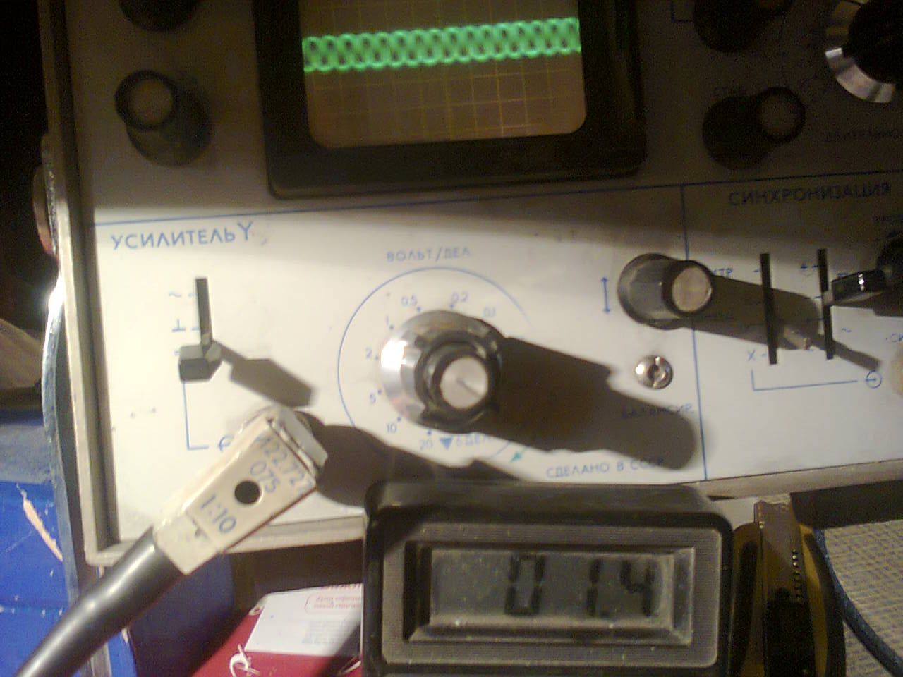 Вот сигнал на выходе щупа (под осцилом вольтметр)