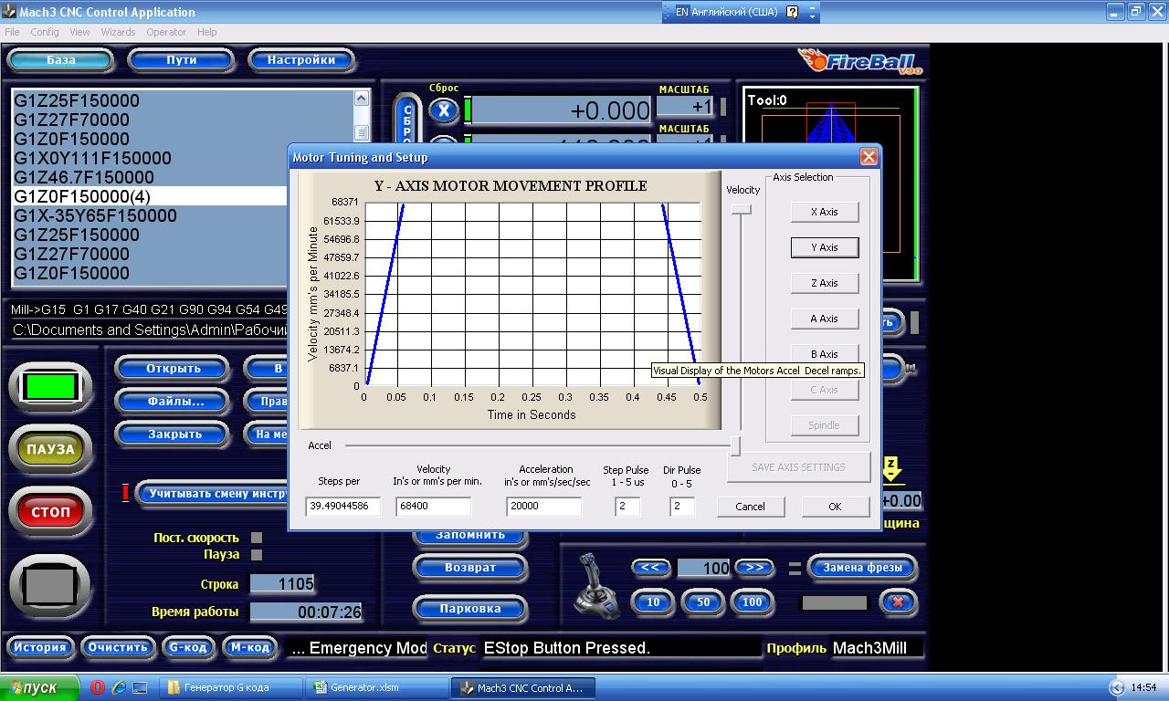 ничего не смущает?artclonic писал(а):Скорость - 67140 мм/мин (она больше не уставляется)