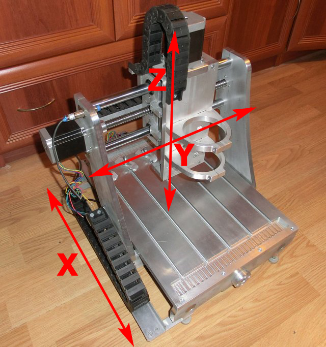 Да, согласен, это вопрос удобства. Да и с учётом ориентации станка относительно оператора, лично мне будет удобнее когда X вдоль портала, а Y вдоль длинной стороны стола. Кстати, на массе китайских станков очень часто пиктограммы клеят - на левой стороне балки портала "-X", на правой "+X".