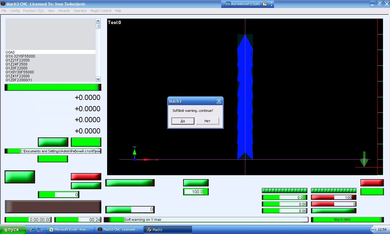 Все!Разобрался! С лимитами! Да и в своем скрине нашел отключение Движения инструмента! А самое главное заменил ролики на заводского исполнения и теперь все "мизинчиком" двигается! Клинили самодельные ролики!!!!Механика - надо всегда с нее начинать!!!!