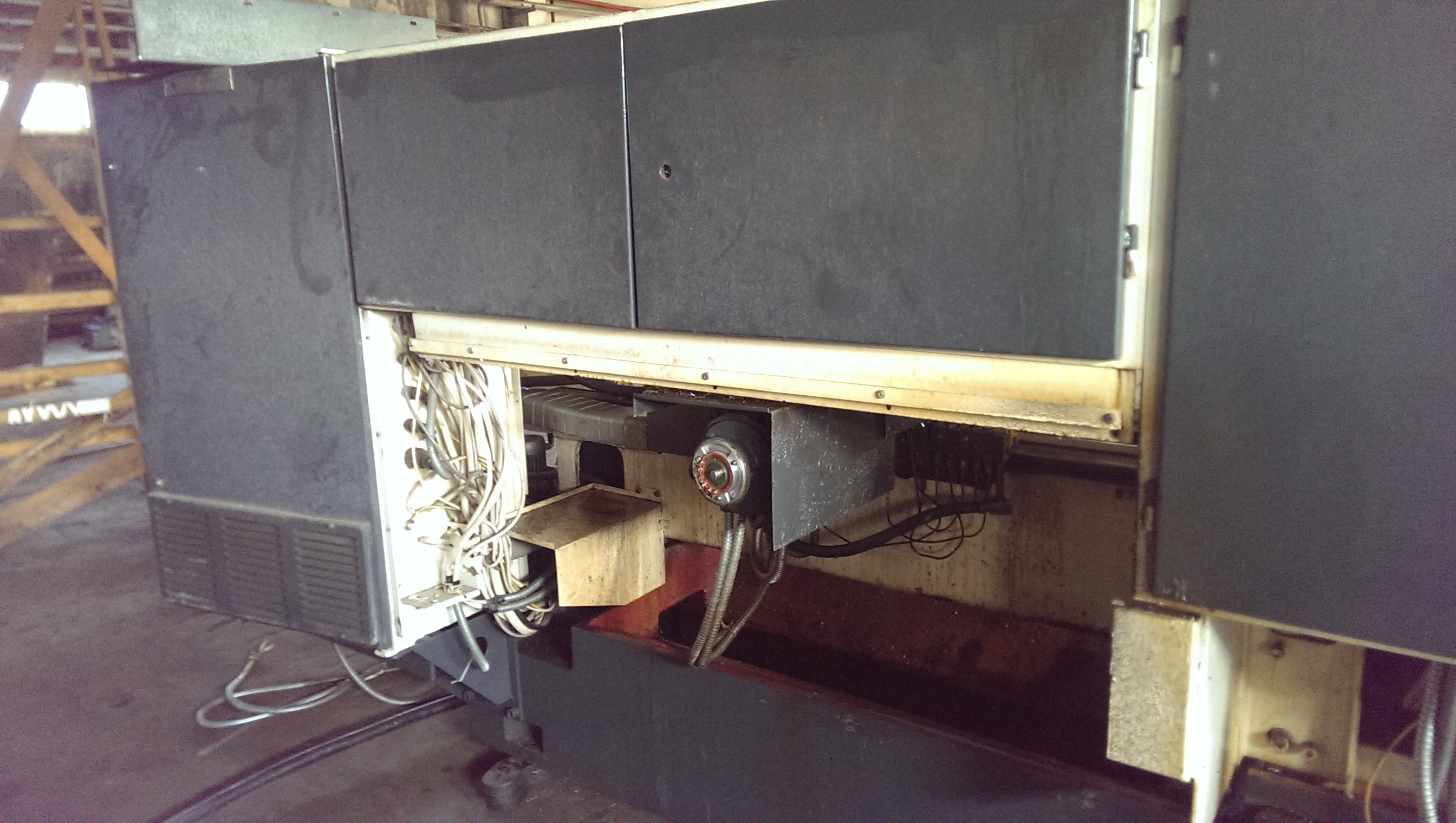Под электрошкафами только один кожух на станке висит. Станок сейчас перевозят на другое место, поэтому часть кожухов снята. Сейчас станок в таком состоянии: