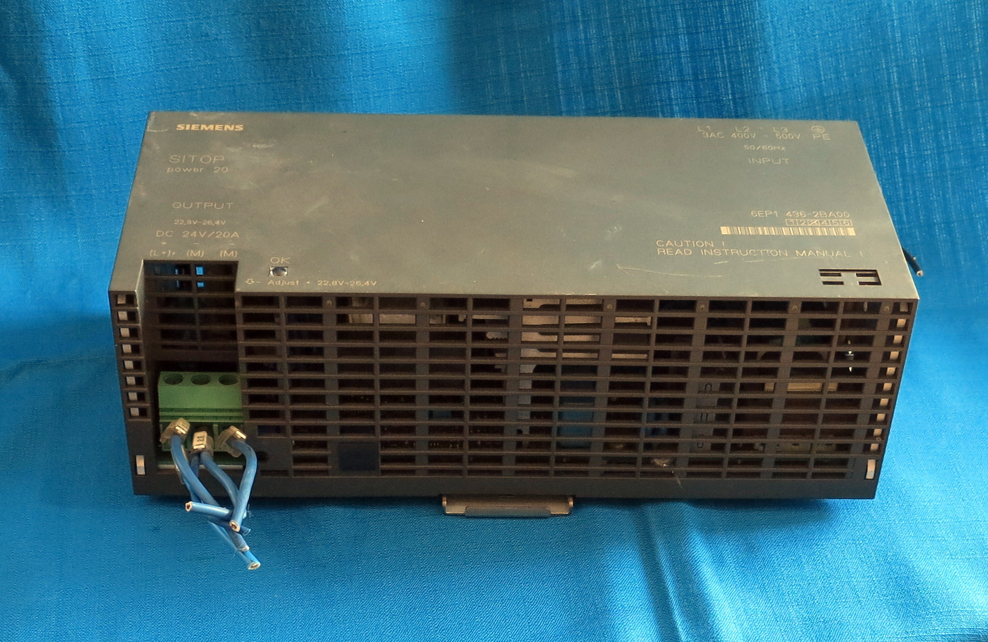 Кроме частотника, у Андрея я прикупил и блок питание. 3 фазы, выход DC 24 вольт, 20 ампер. Не стесняйтесь поспрашивайте, может быть у Андрея что еще лежит в кладези!!!