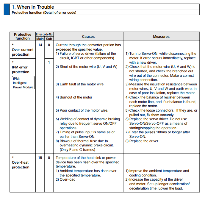 На дисплее драйвера высвечивается ошибка Err 14.1 что она означает х.з. так как в инете искал не нашел, может кто знает где найти кодировку ошибок для данного драйвера.