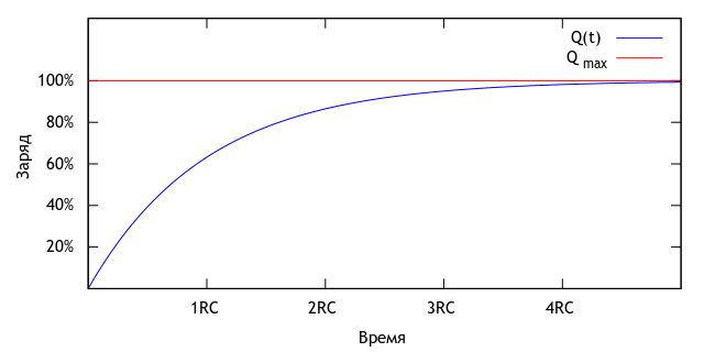 Если мне не изменяет мой склероз, напряжение на конденсаторе меняется согласно формуле: