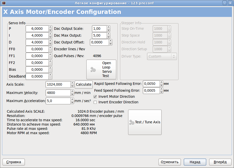 Это есть Axis Scale [Encoder pulses/mm] или Quad Pulses / rev?PKM писал(а):Вообще ЕМС интересует только один параметр: количество импульсов энкодера на единицу перемещения рабочего органа.