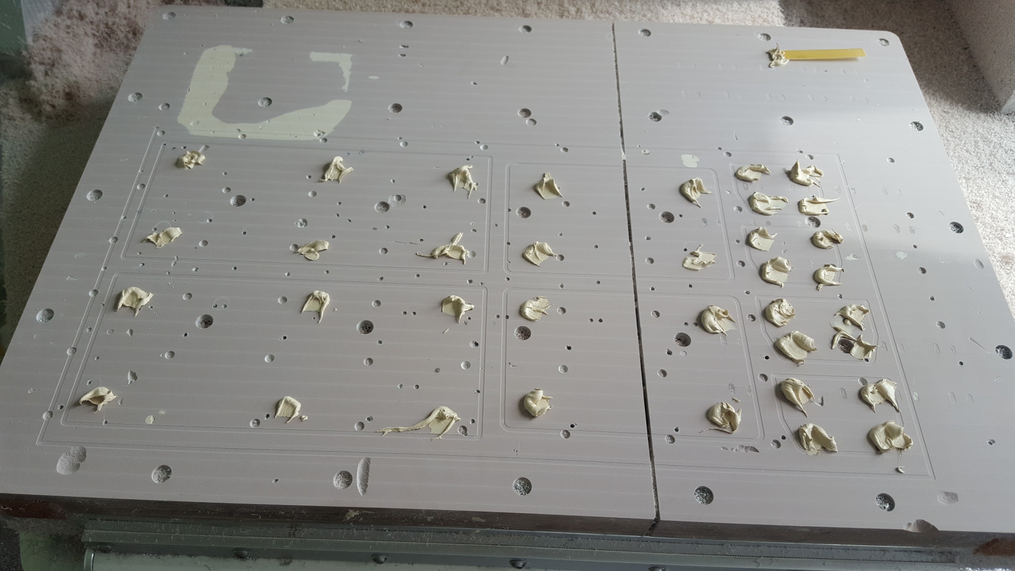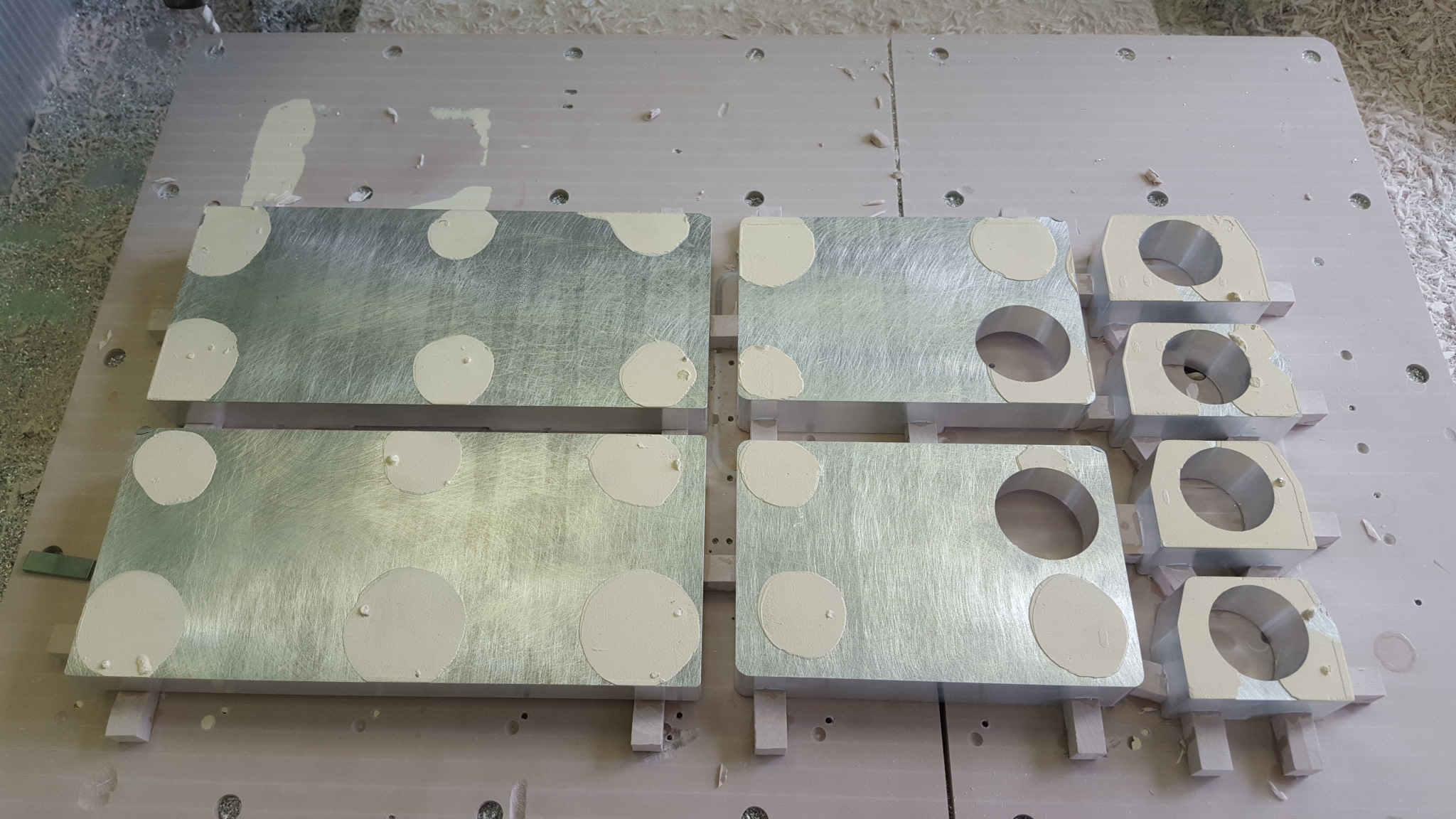 14.фрезеруем вторую сторону. (фрезеруем на легких режимах не греем детали а то отлетят циакрин хуже держт температуру чем шпакля.