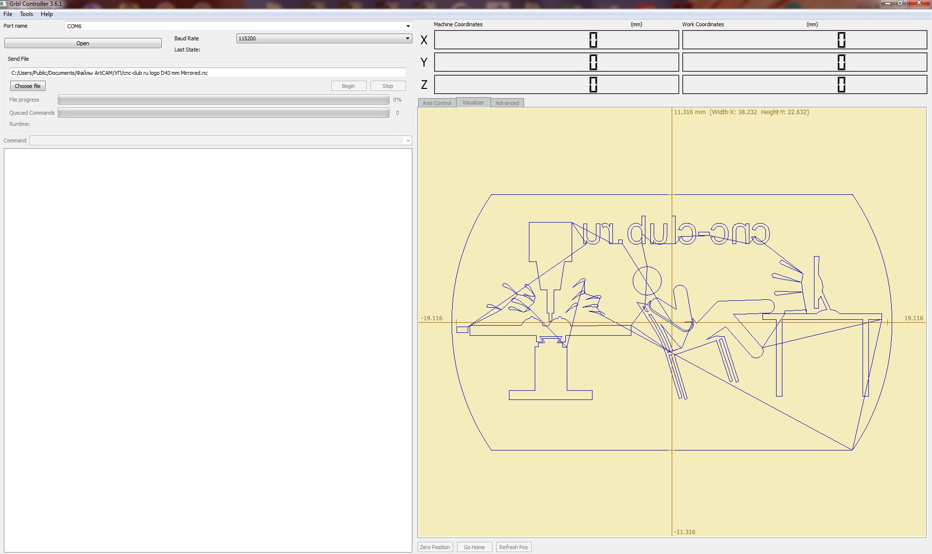 Загрузил по новому 43х43 мм разрешение 1626х1626 эффект тот же. И при 4000х4000 тоже.vektor_z писал(а):Стоит слишком низкое разрешение.. Нужно увеличить или при создании рабочего поля, или при расчете УП..
