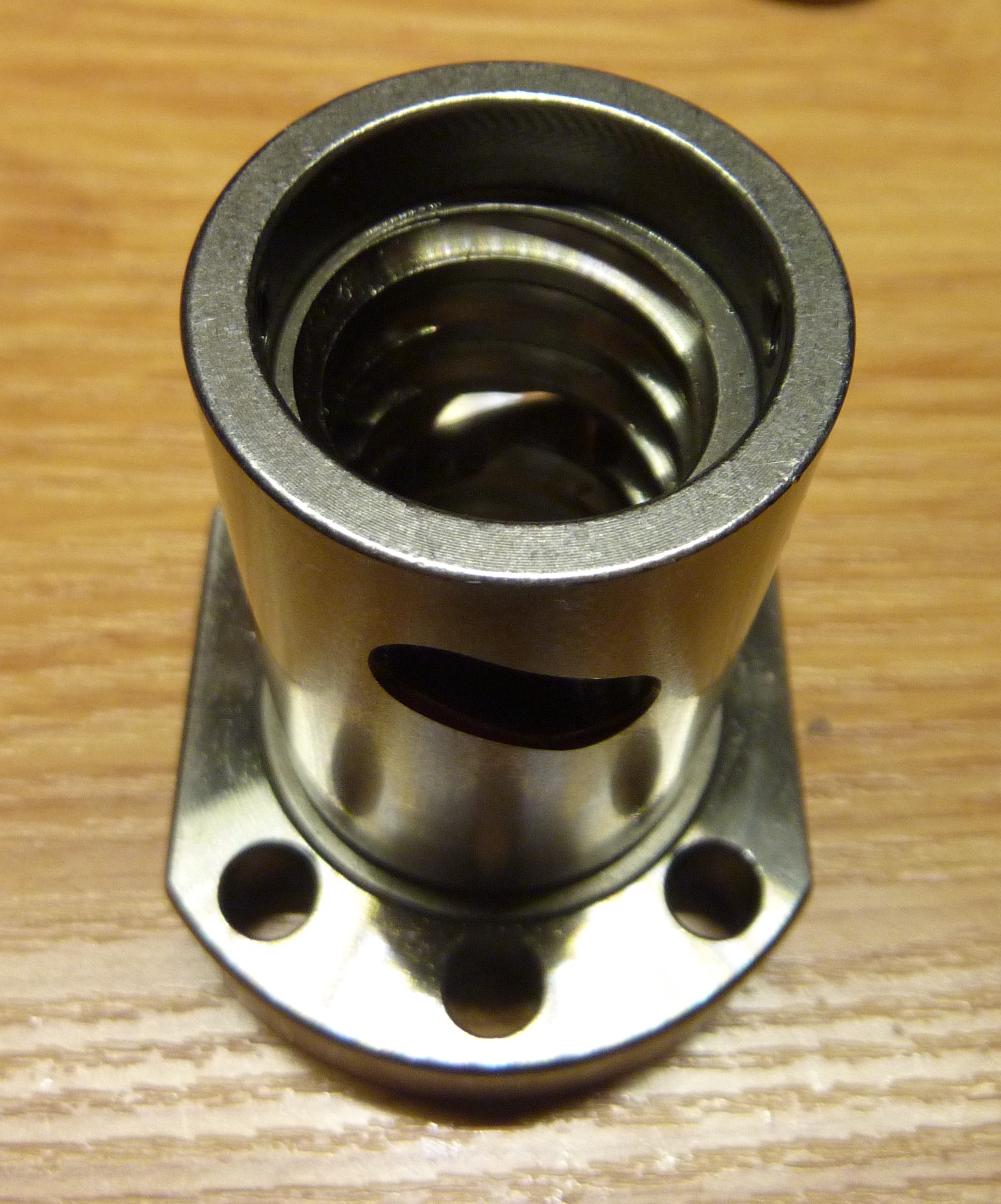 Гайка самая обыкновенная. Люфт выбрать особо не удастся. Но работать будет. По большому счету сильно напороть в гайке сложно, все косяки как на ладони. С винтом все сложней. Там и материал надо выбирать, и поставщик накатных роликов огромную роль играет, прокалка, и гальваника и многое другое.