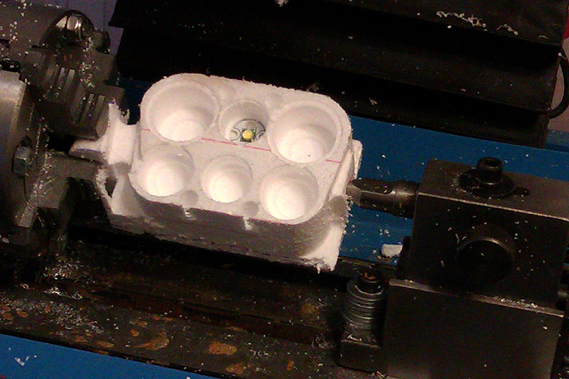 Деталь держится в патроне за "выступы" (выделил красным), их надо удалить.