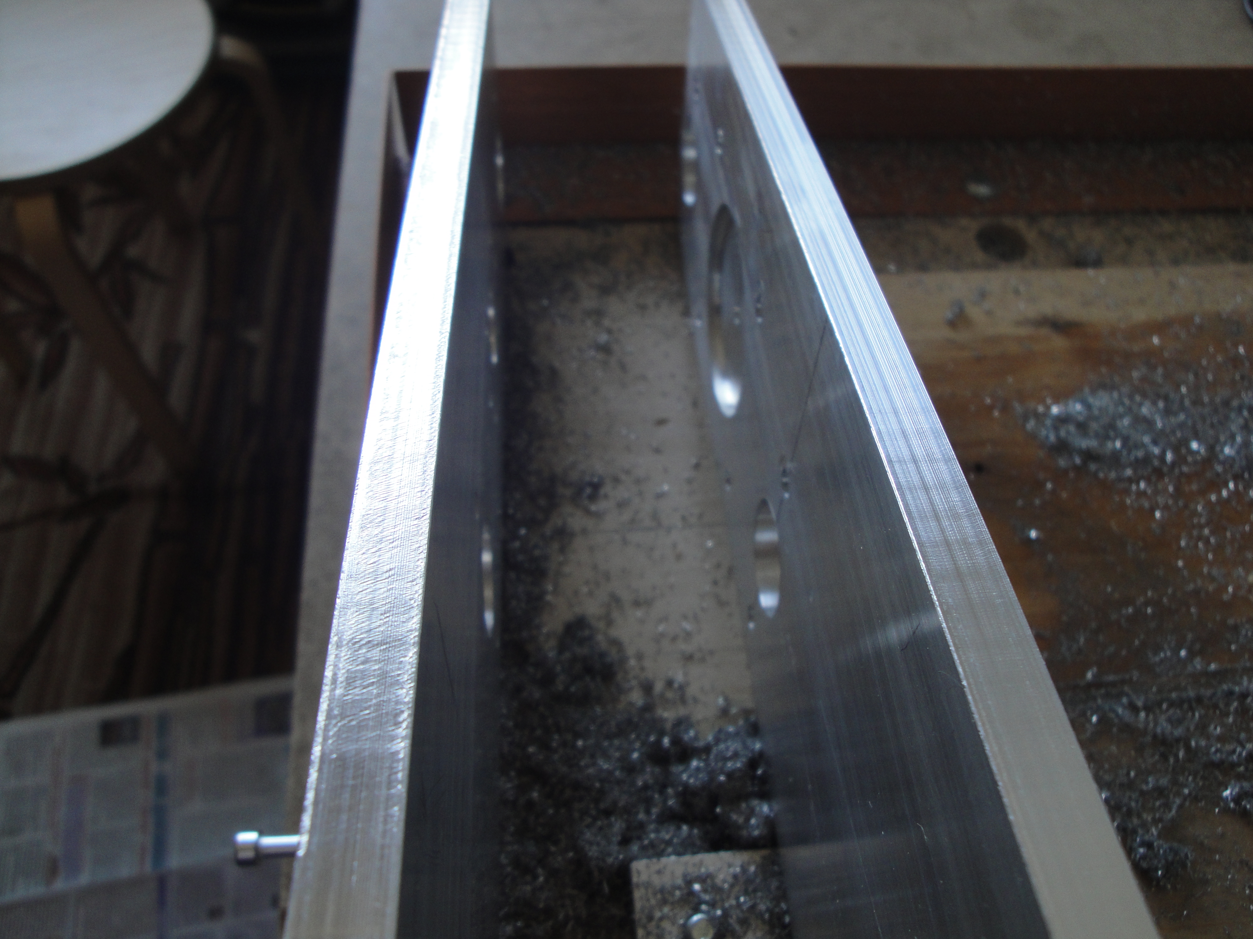 Цель этого пиления была несколько в другом - проверить в практике станок на возможный пропуск шагов, особенно по оси Z, и попытаться дойти до "срыва". Пока дошел до скорости подачи 1200мм в минуту, но видимых следов пропуска шагов пока не заметил. Контроллер у меня обычная "красная" плата с ЛПТ, питается 27в, джамперы по току стоят на 75%, шаговые двигатели - обычные НЕМА 23 с усилием 10-12кг. В этой электрике ничего не заземлено и ничего не экранировано.