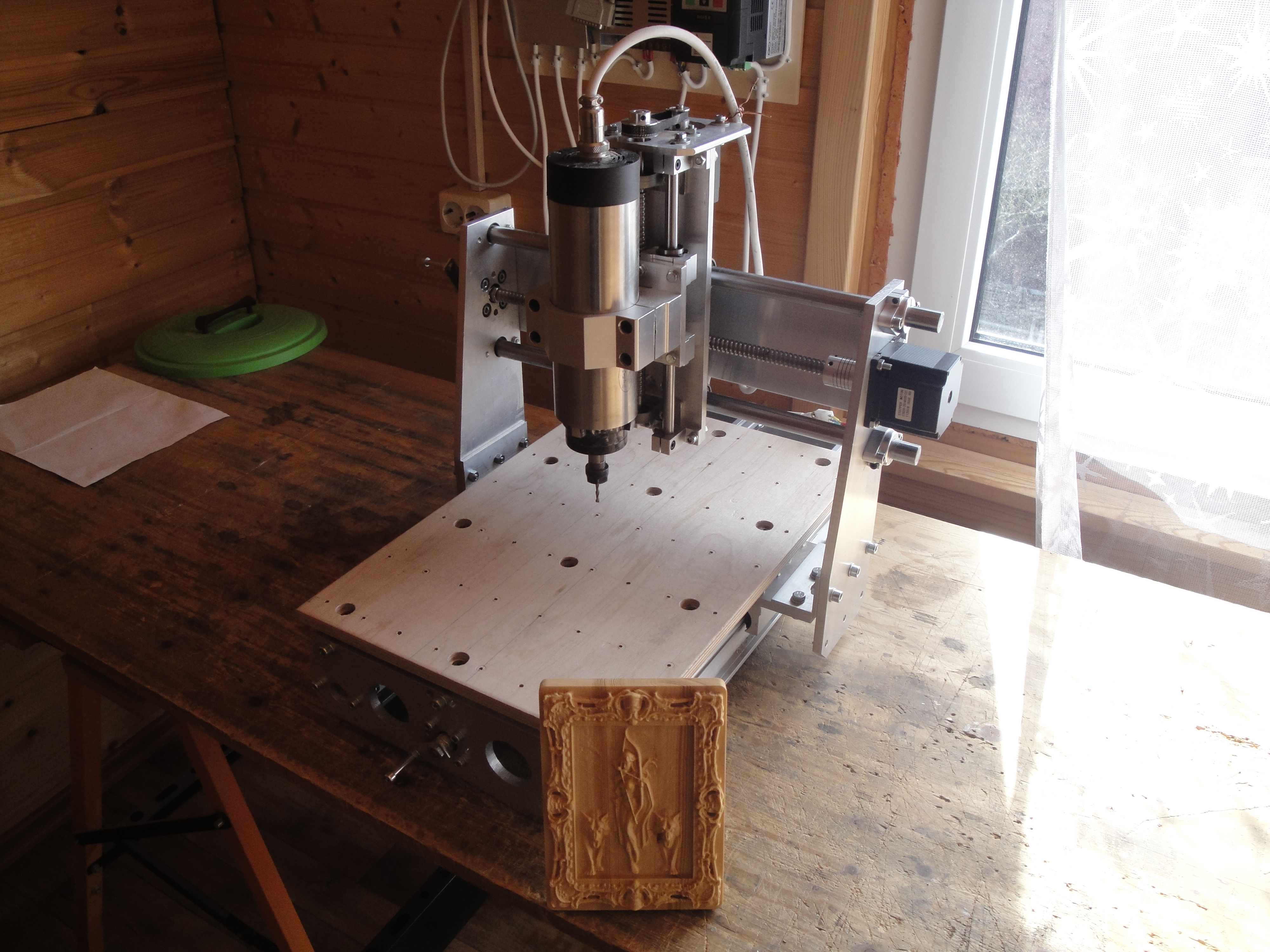 Насчет гравюры. Резал ее из обрезка еловой доски, чтобы впустую не гонять станок. Когда практические возможности станка по производительности окончательно станут известны, тогда можно будет переходить и к благородному дереву, нужному разрешению моделей, а также "правильным" фрезам!