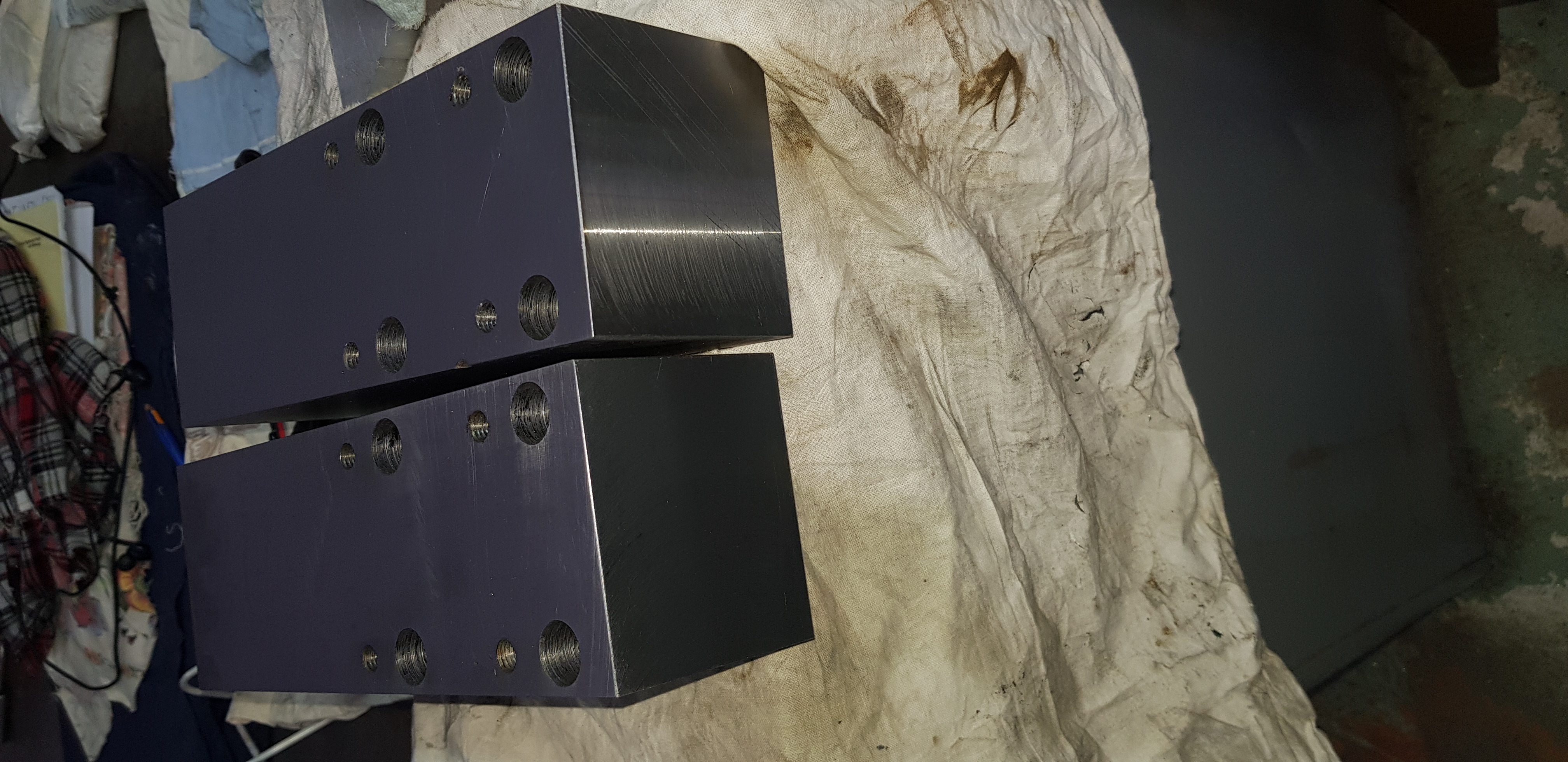 Готовы новые детальки для доработки станка. Для поднятия балки партала. При работе с тисками нехватает рабочего хода вверх на координате z. Остадось покрыть и покрасить в зеленый цвет. Материал сталь 40х тяжелые получились. И еще один плюс у поднятия партала. Его смещение на 25мм назад. При установке нового низкоскоросного шпинделя появиля недочет конструкции и он стал выезжать за пределы рабочего поля, а теперь все исправется при установке дистанционных прокладок.