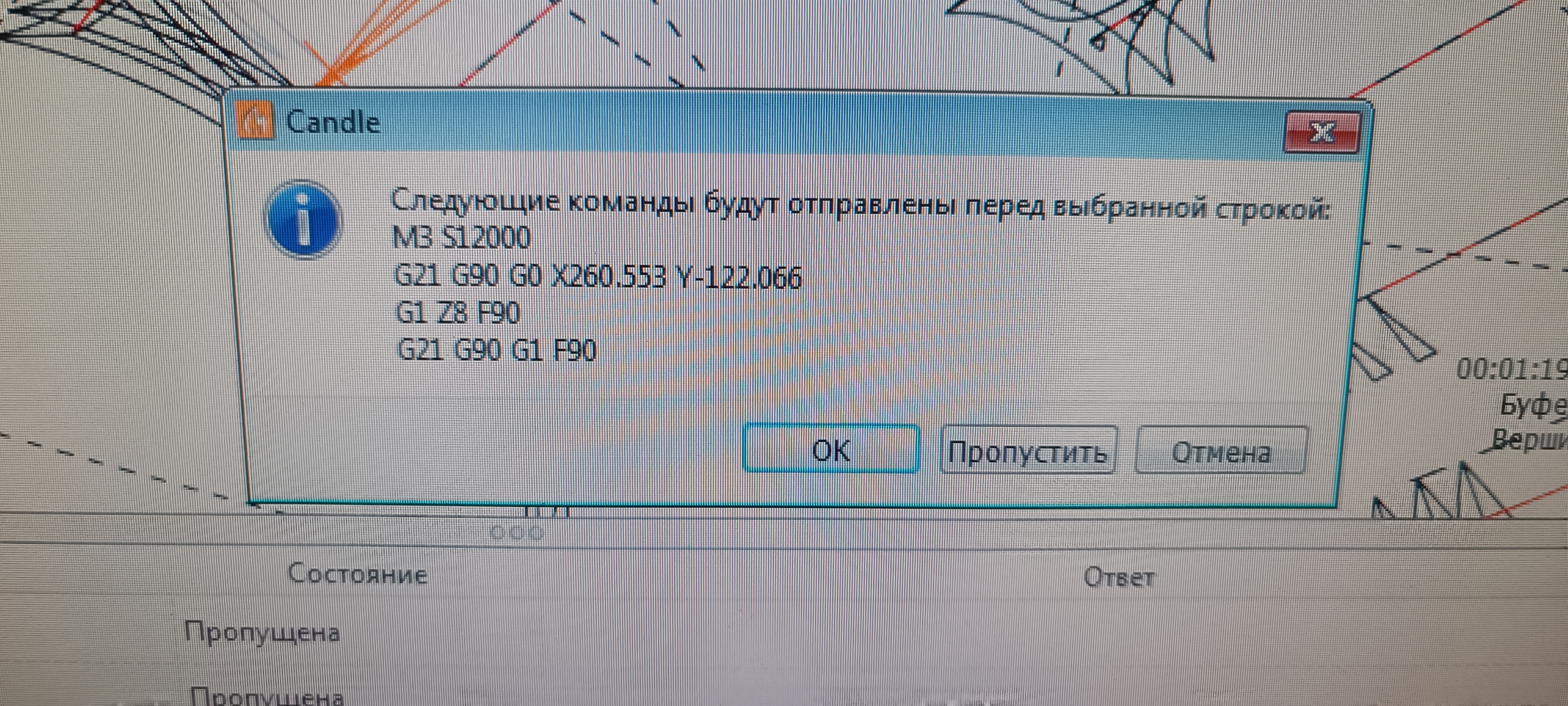 Вторая фотка, где предлагается выбор, либо продолжить с текущего места, либо, применить код перед отправкой на выбранные координаты(в случае когда сделал остановку и продолжаешь не с первой строки)