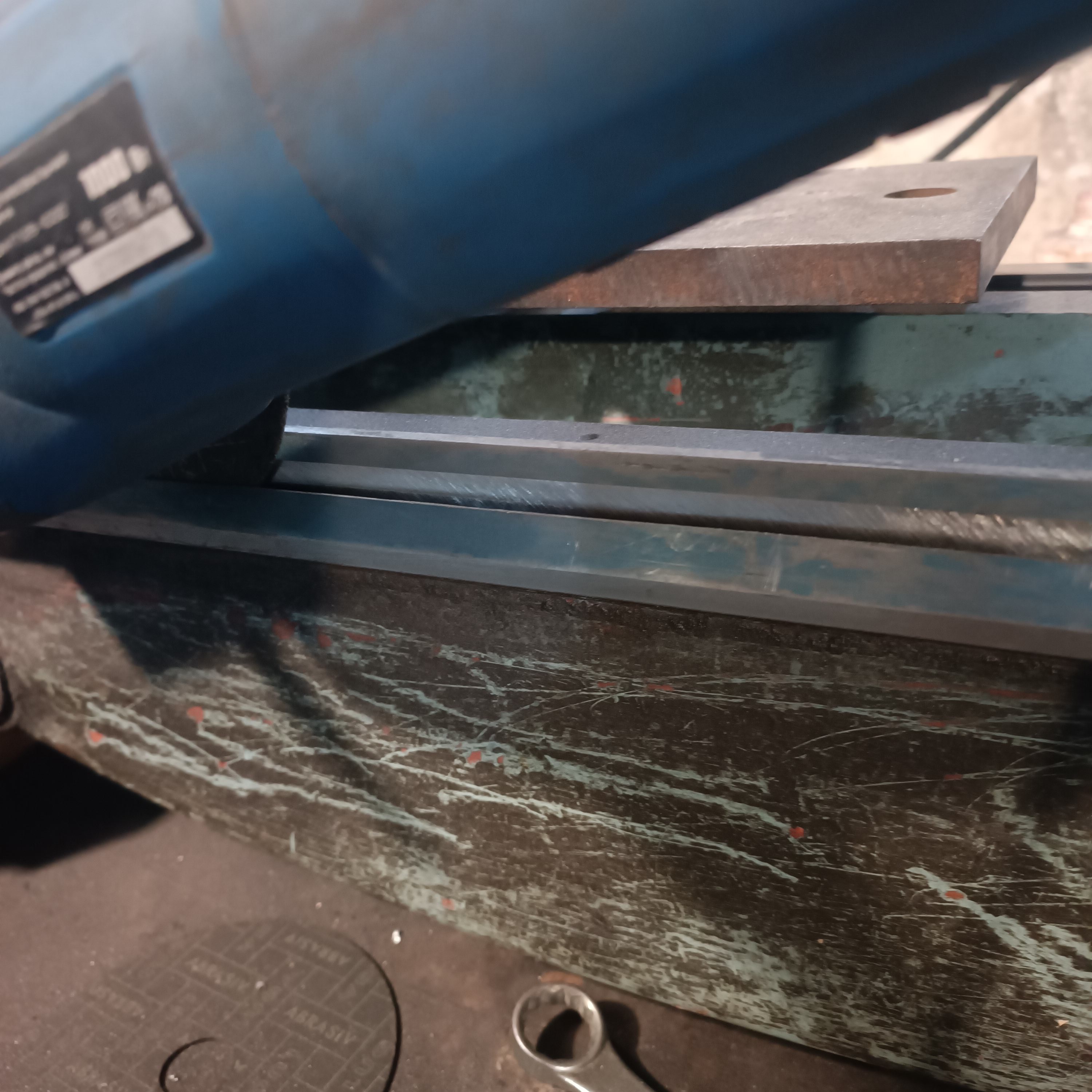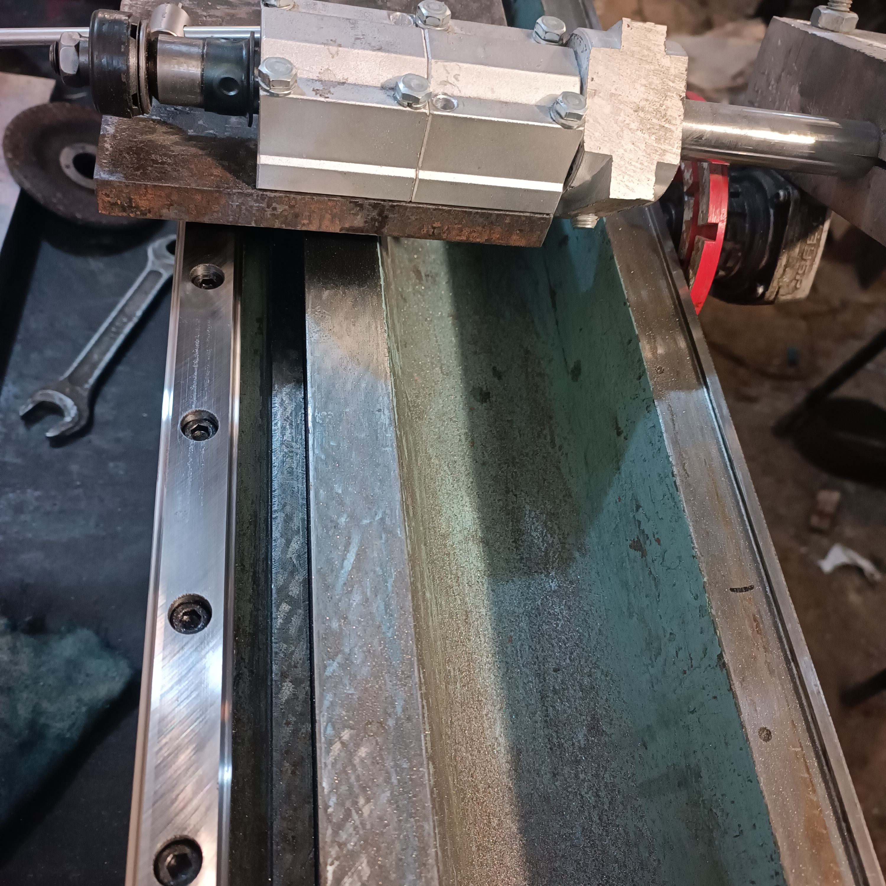 Рельса прикручена к основанию , там где и должнаработать. После отрезки шлифанул алмазным диском . Вроде получилось не хуже фрезера.