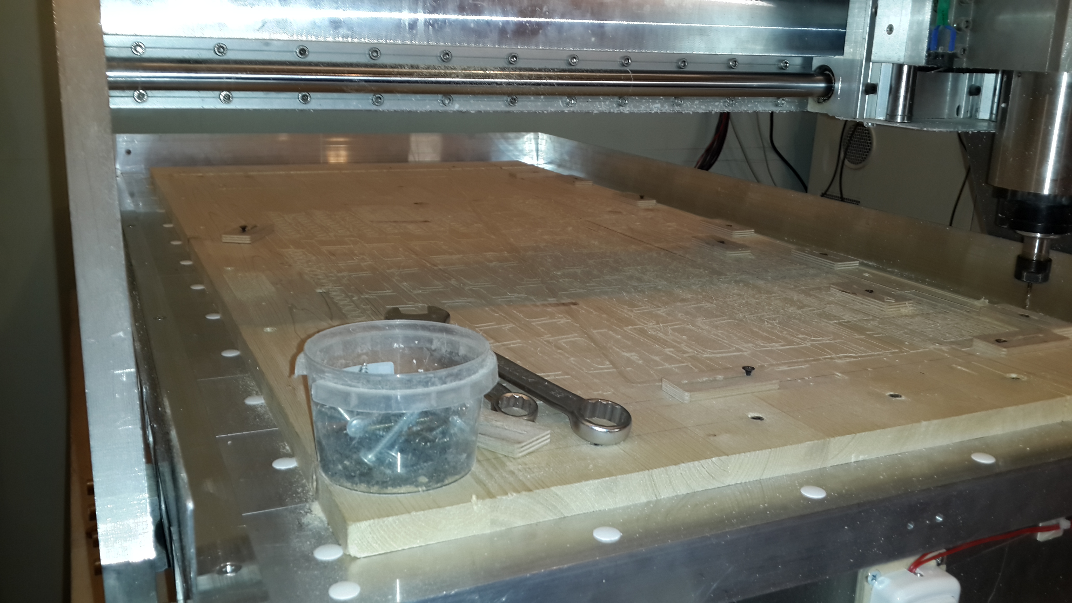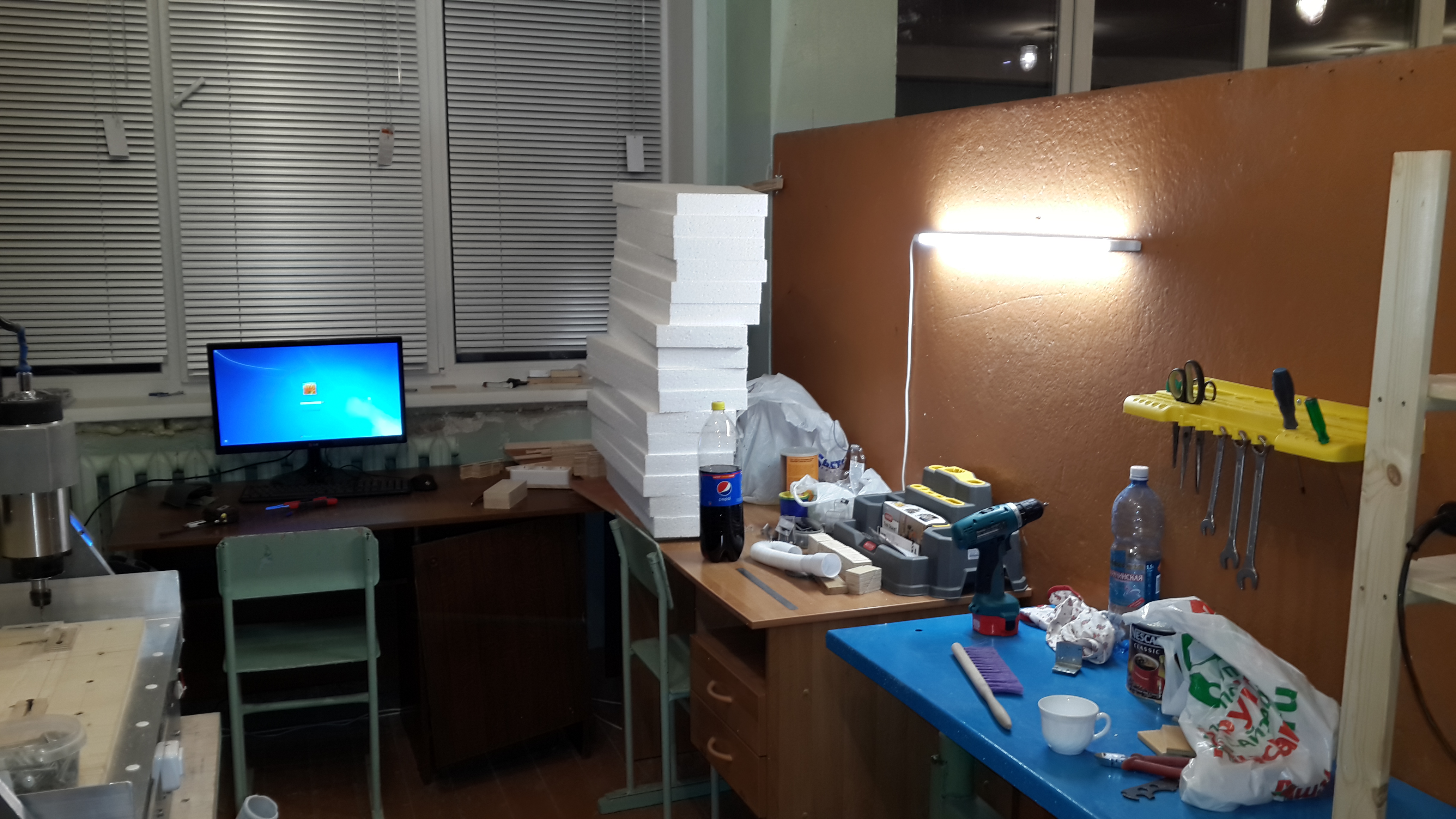Прошло больше года, после запуска станка. За это время станок пережил один переезд, небольшую модернизацию БП, замену почти всех кабелей и замену гайки по оси Y.