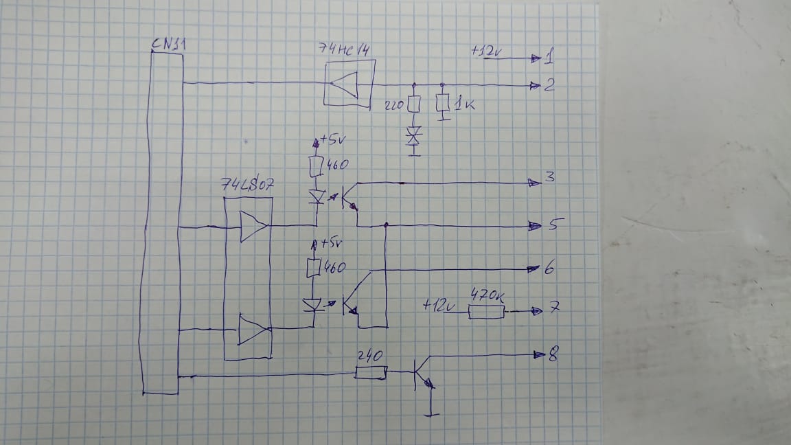 Странная схема... Непонятно нафига там оптроны. Да и способ включения резистора 1кОм и номинал резистора в 470кОм сомнительны...Rom327 писал(а):Развязка между компьютером и драйвером мотора