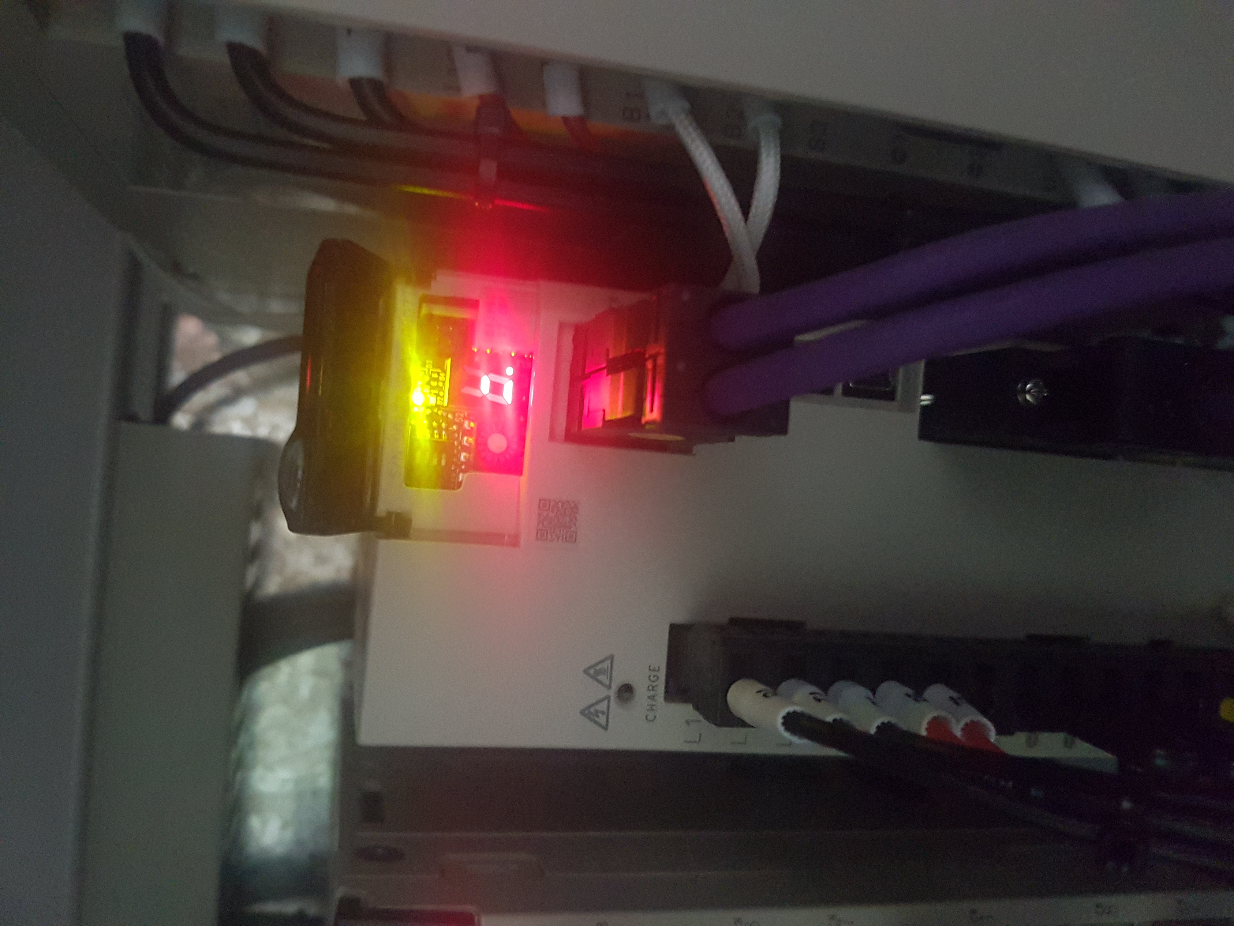 Показывает на экране чпу. На сервах как посмотреть? Так на них светятся две чёрточки. Когда полностью включаешь (выкл. E-stop). Светиться точка.