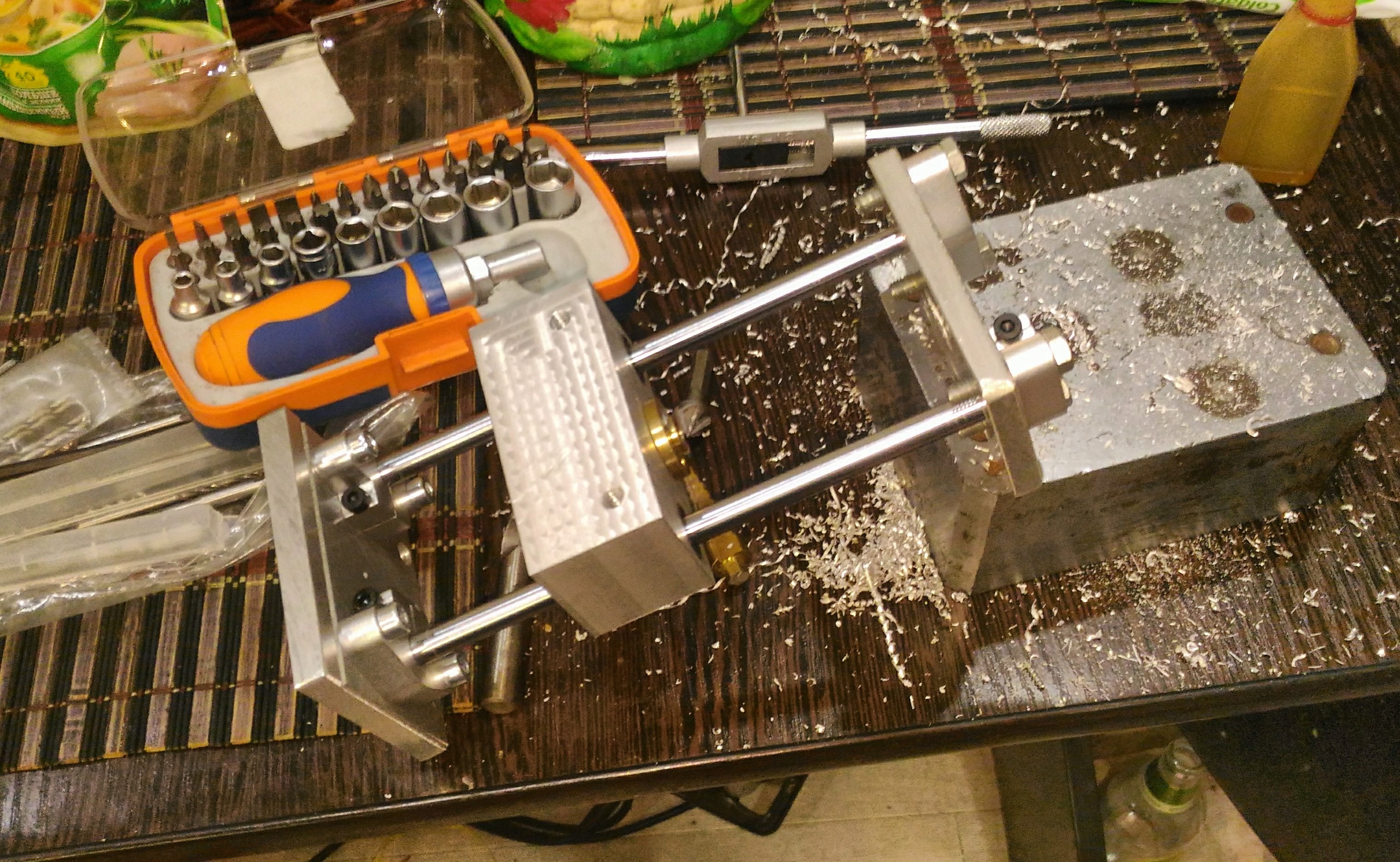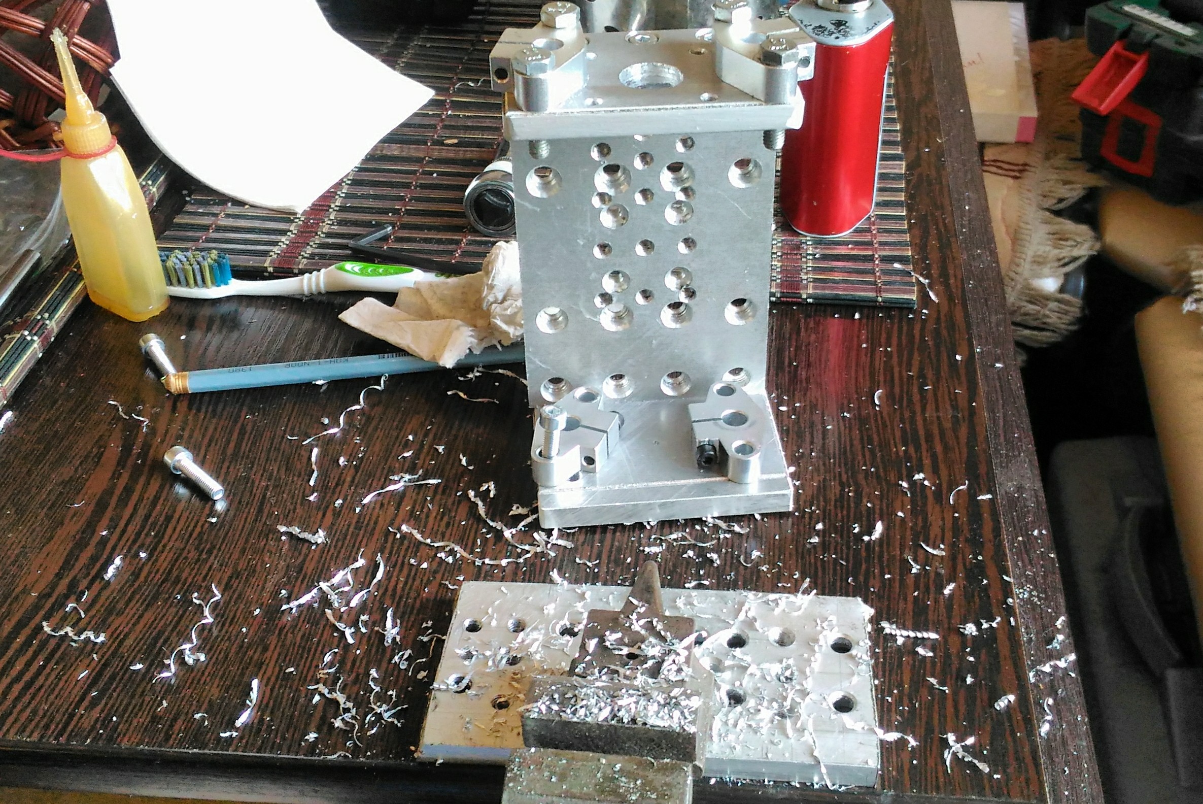 Сделал несложные чертежи, отдал фрезеровщику. Верхнюю и нижнюю пластины делал сам, получилось некрасиво, но всё работает(сейчас уже заказал новые, чисто ради эстетической красоты).