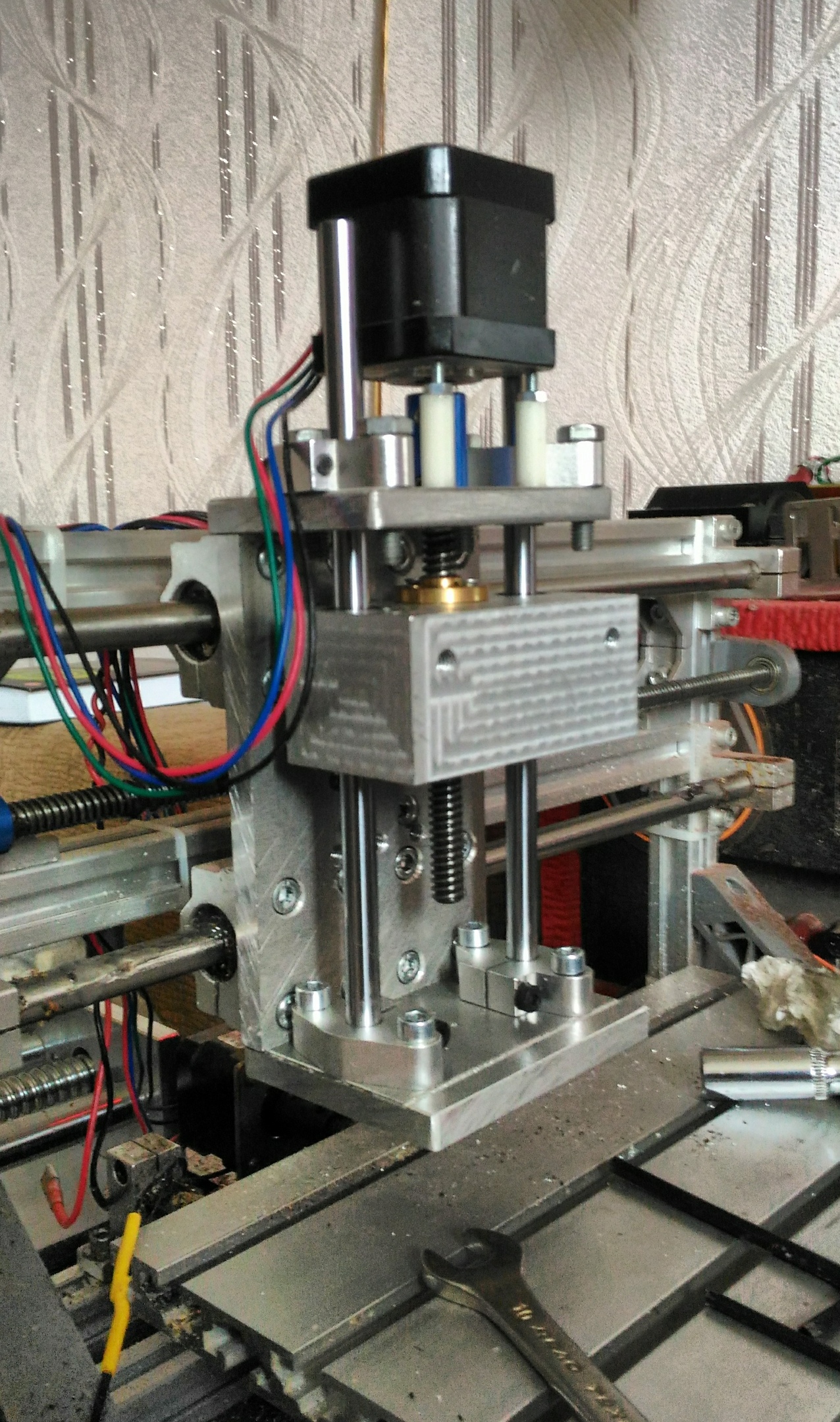 В таком "станке" разве имеет смысл эта замена? Для себя, я не нашел особых плюсов в такой переделке. Станок используется для гравировки алюминия+оргстекла и выборки в деревянных брусках. Очень редко делаю платы(ЛУТом привычнее). Замена всего модуля перемещения по Z обошлась в сумму, соизмеримую с китайской осью Z(та, что на 3х валах). Сам винт швп, его обработка в размер, гайка, держатель гайки, - всё это усложнило бы мою затею и сделало бы ощутимо дороже (если вообще можно говорить о "бюджете" в ключе таких переделок).