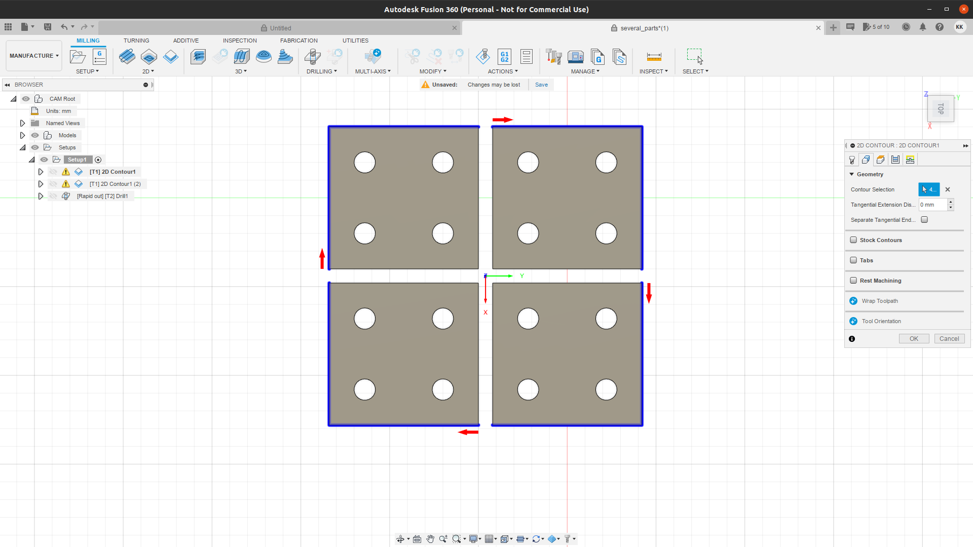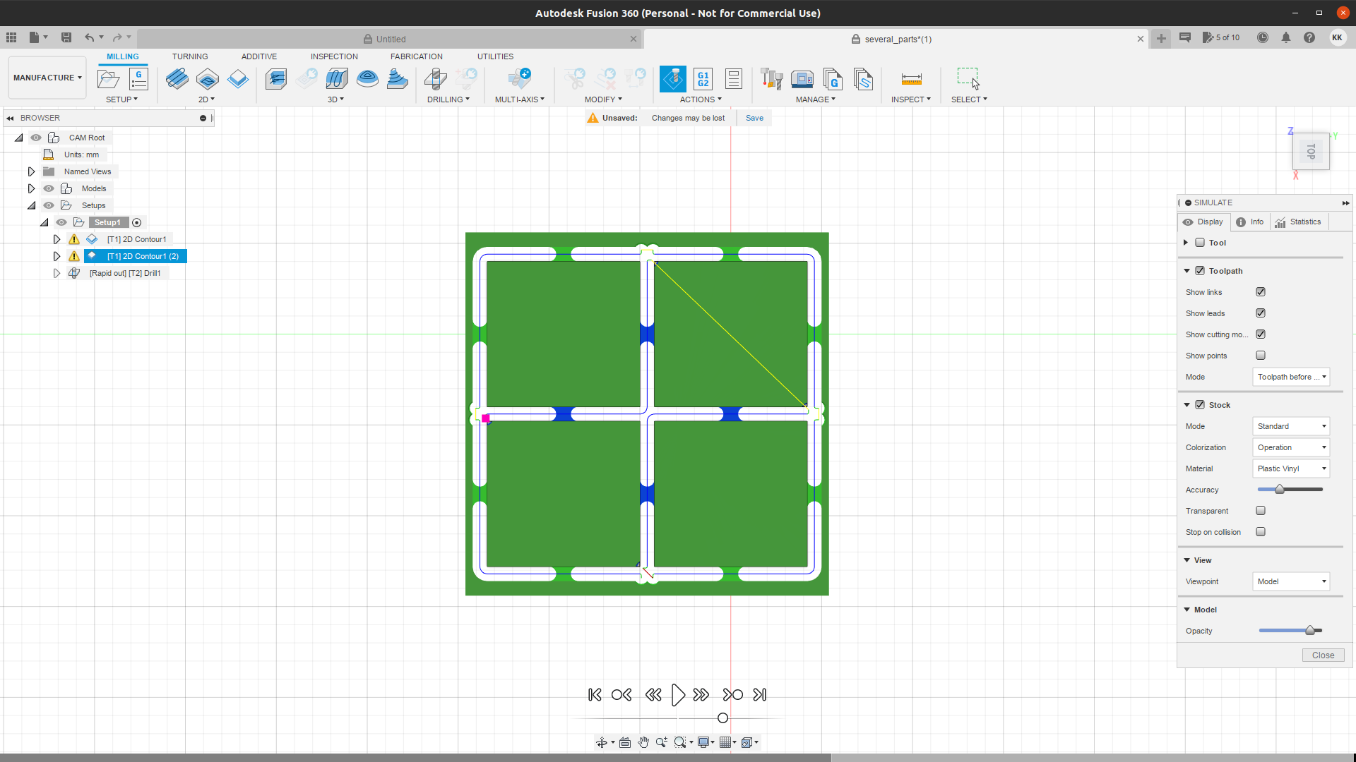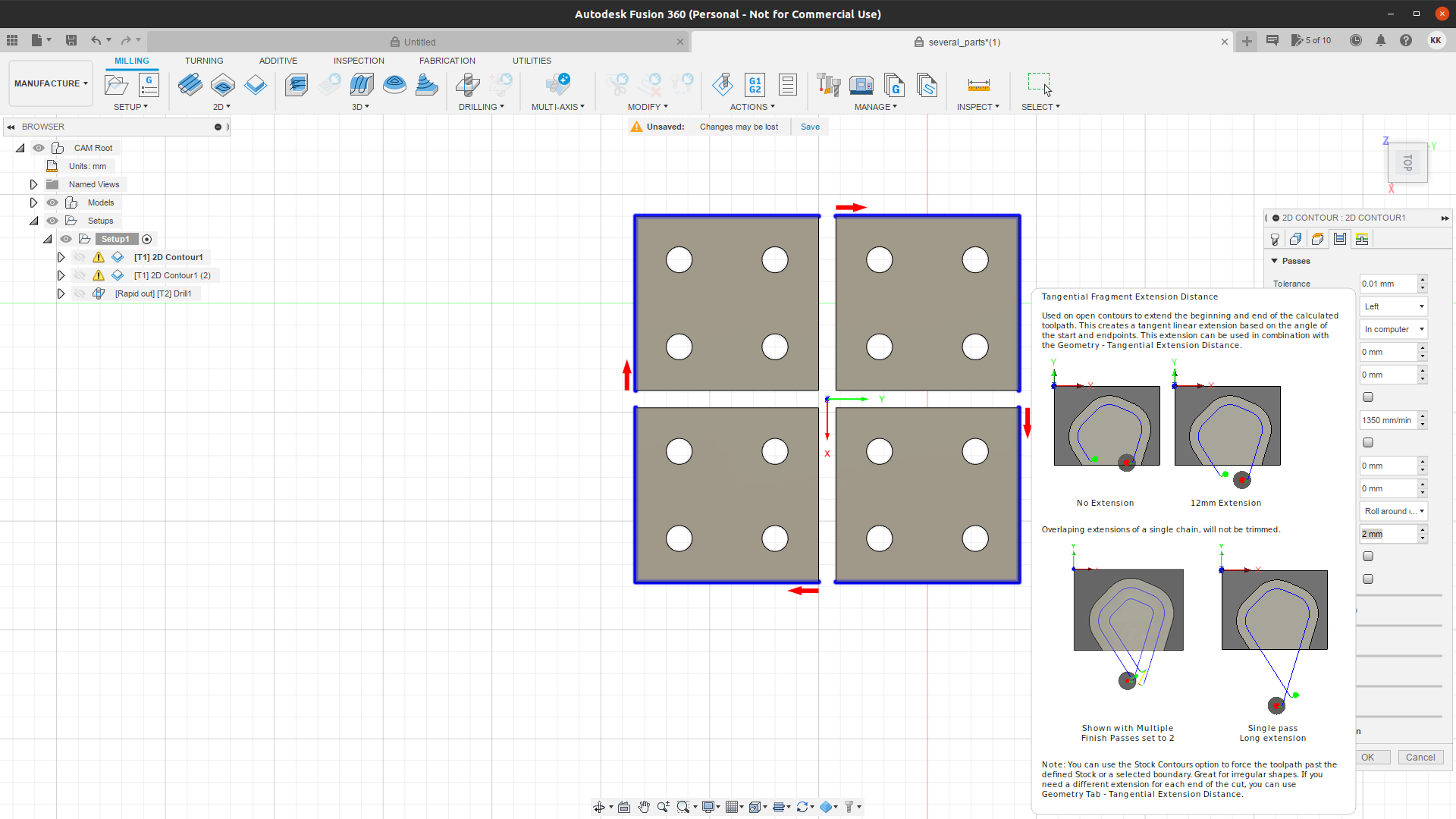 Как вырезать по контуру несколько деталей, используя общий путь (чтобы избежать лишних проходов фрезы)?