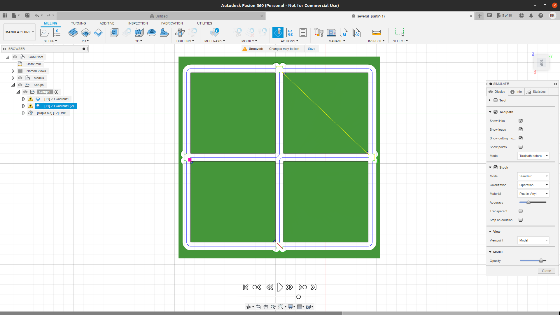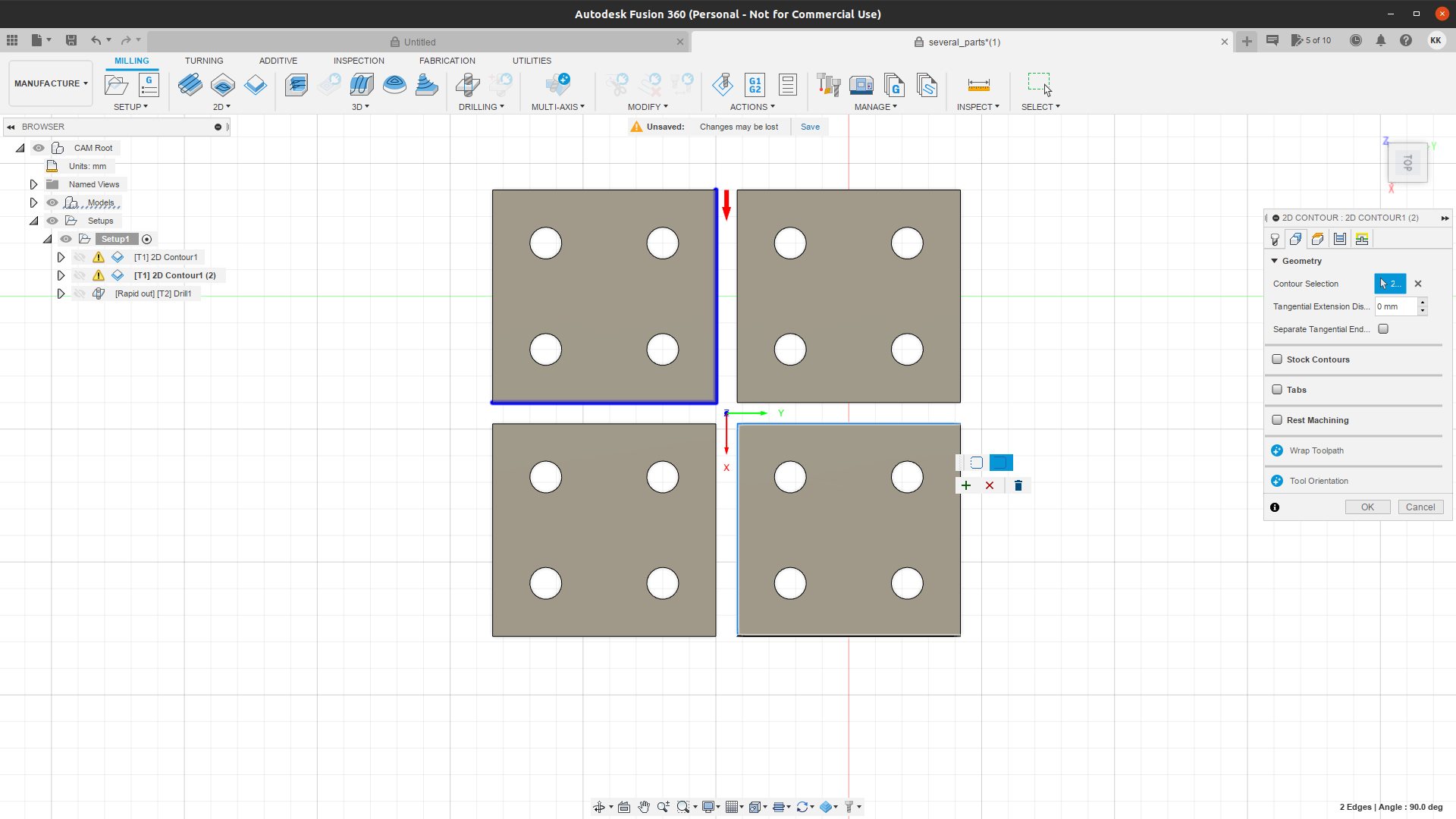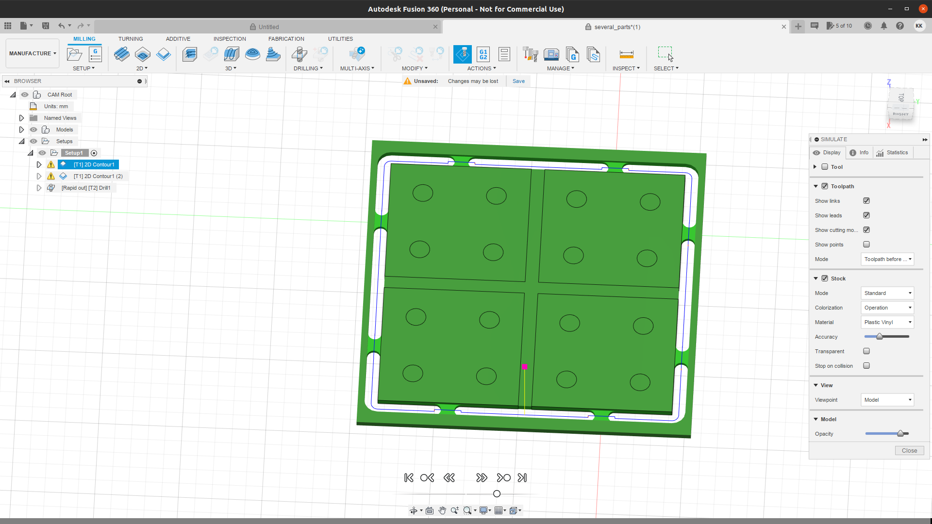 Как вырезать по контуру несколько деталей, используя общий путь (чтобы избежать лишних проходов фрезы)?