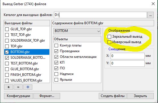 Плата односторонняя, для всех гербер-файлов выбран "низ".