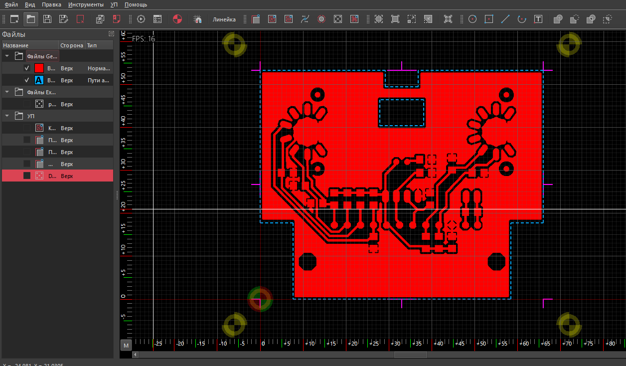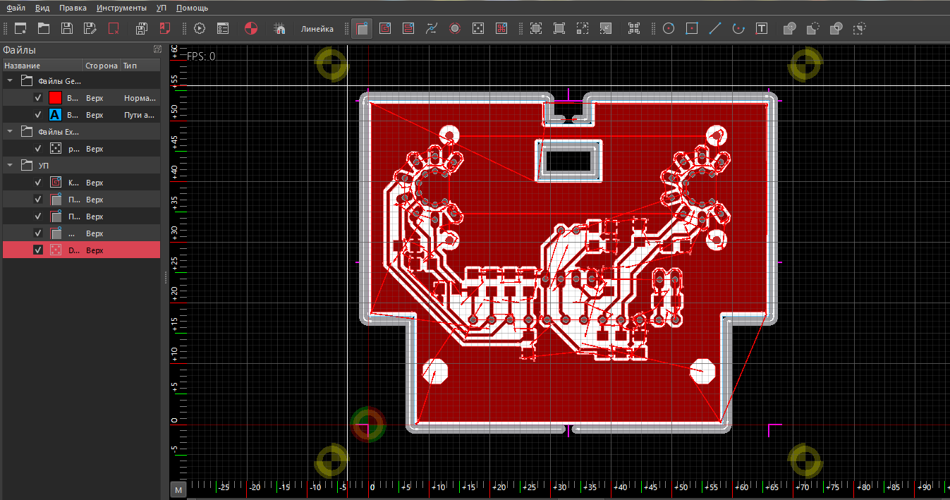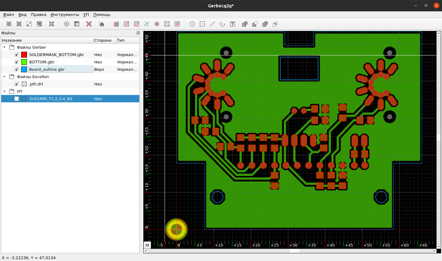 Вот такая картина, если просто загрузить гербера и ничего не трогать. Видим, что программа определила, что ваша медь bottom и переключила на "низ", ну а сверловка грузится для верха, как я и говорил.
