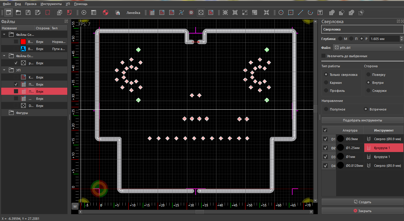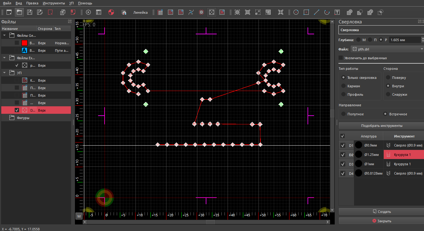 В .drl - файле идут сплошным потоком координаты отверстий одного диаметра. Надо знать, какие из них правильные, а какие следует убрать.
