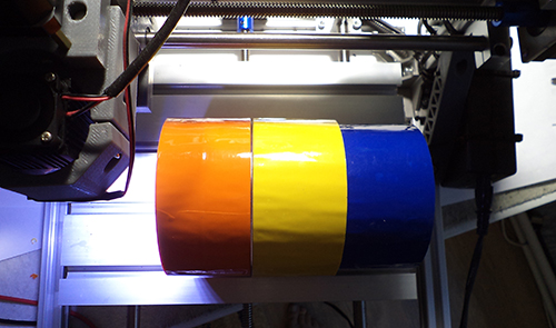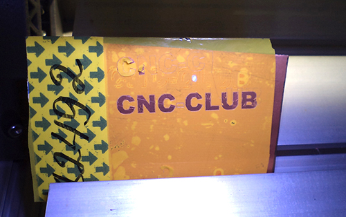 Да обычный, широкий скотч, только синий. Если найти чёрный, можно вообще применить "лазер и DVD" 200-250mW, уменьшив скорость. Чёрный цвет больше притягивает свет, лучше резать будет.