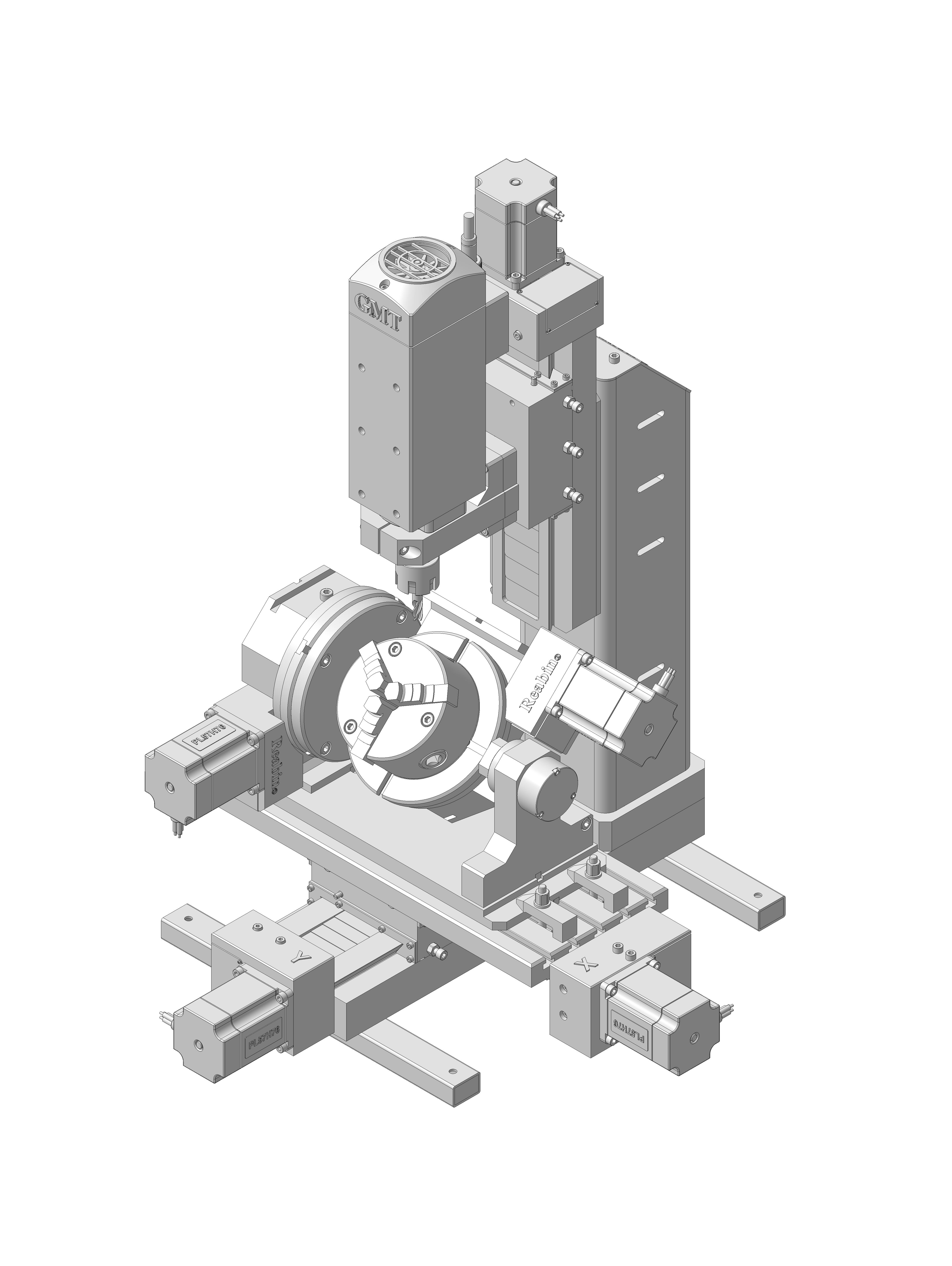 Рендер прилагаю, но по факту мне его немного по-другому скомпоновали - уменьшили вылет шпинделя, и стол поворачивается не к нам, а от нас.