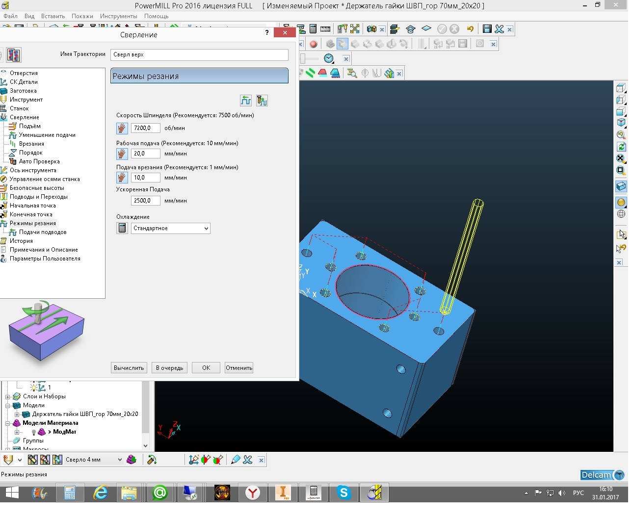 Сегодня верхнюю плиту под шпиндель сделал. Сверлил станком. Подача 200мм/мин, обороты 7000об/мин. Циклом по 2мм с полным выводом. Нет момента на малых оборотах, поэтому сверление не понравилось, хотя все просверлил. Длинные сверла. Надо заготовить коротких.