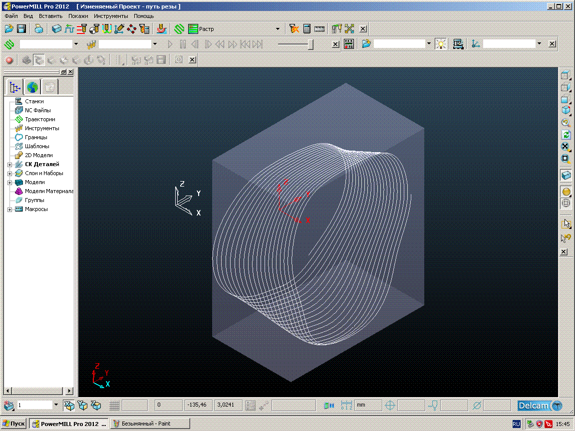 Файл визуализации обработки будет соответствовать моей колодке.Но те знаю как запустить стратегию обработки по кривой