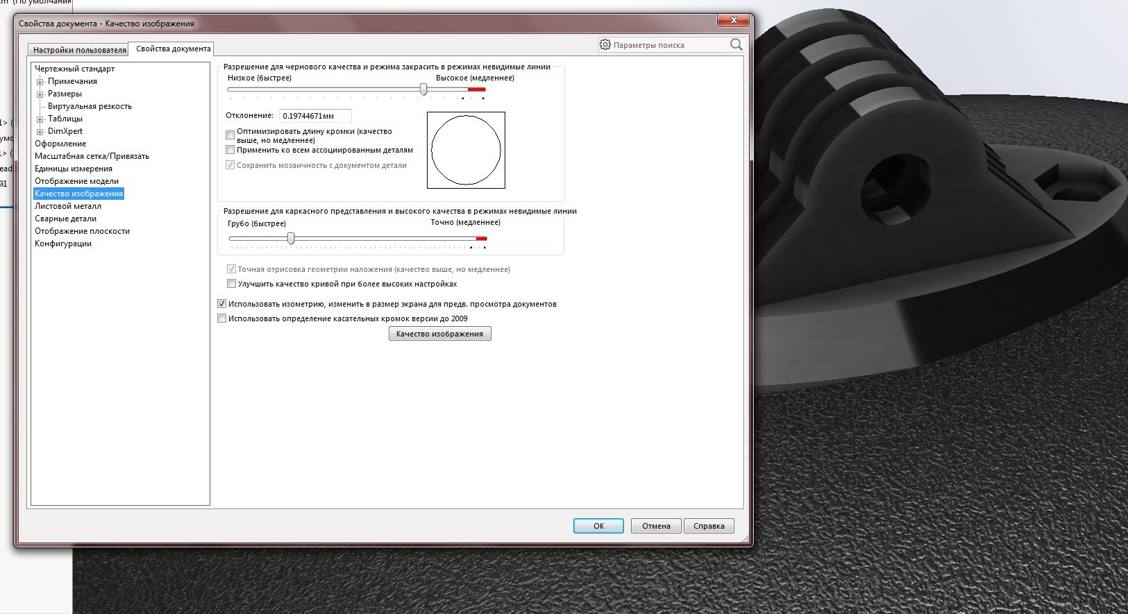 Есть ли возможность по умолчанию установить нормальное качество отображения на экране? (что бы не заходить постоянно в это меню при создании новой детали)