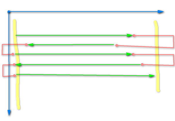 Если это траектория для выжигания, то она состоит из линий где первая линия направлена слева-направо, вторая справа налево.