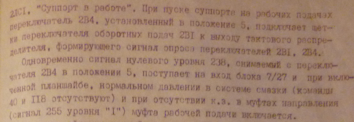 Лампочку "супорт в работе"при руч.устан.перемещении в ладере включать в месте с двигателем,а вот при рабочей подаче вмести с направлением? Ведь муфта рабочей подачи у нас включена.
