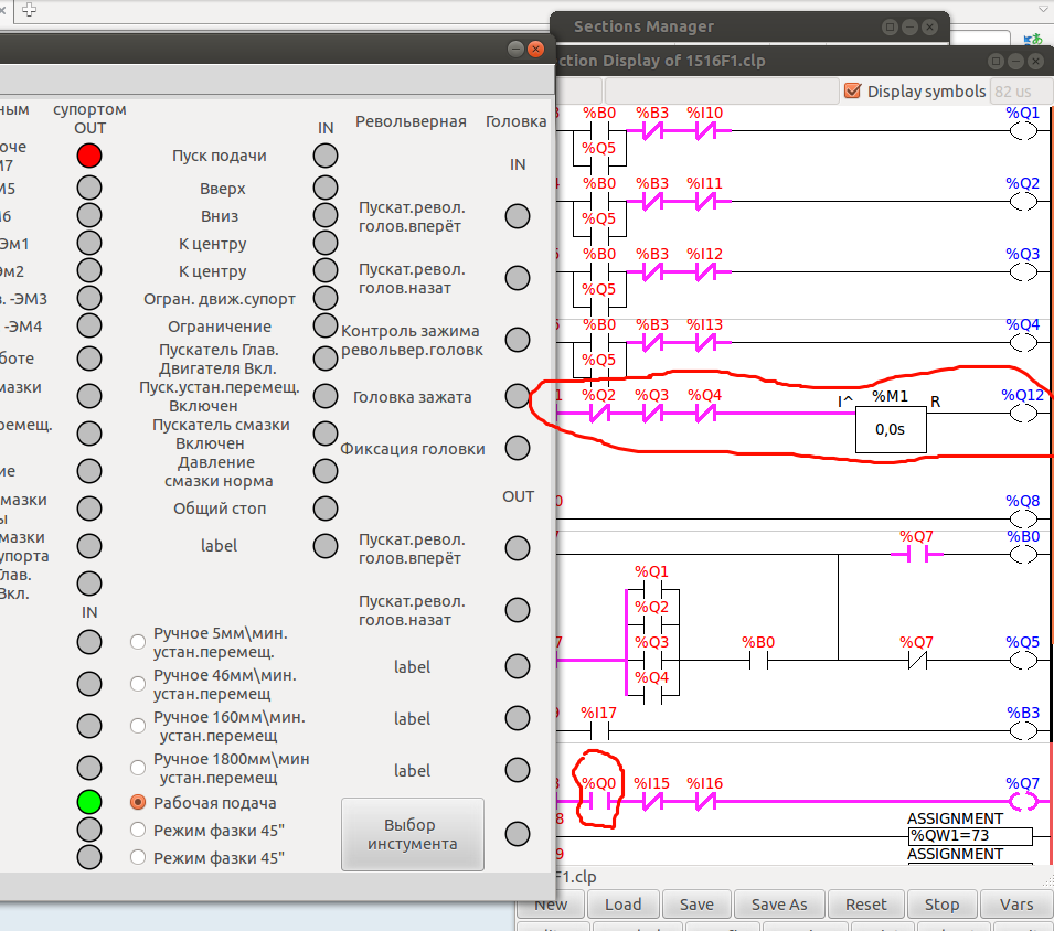 В ладере я разорвал эти цепи кнопкой пуск %I7