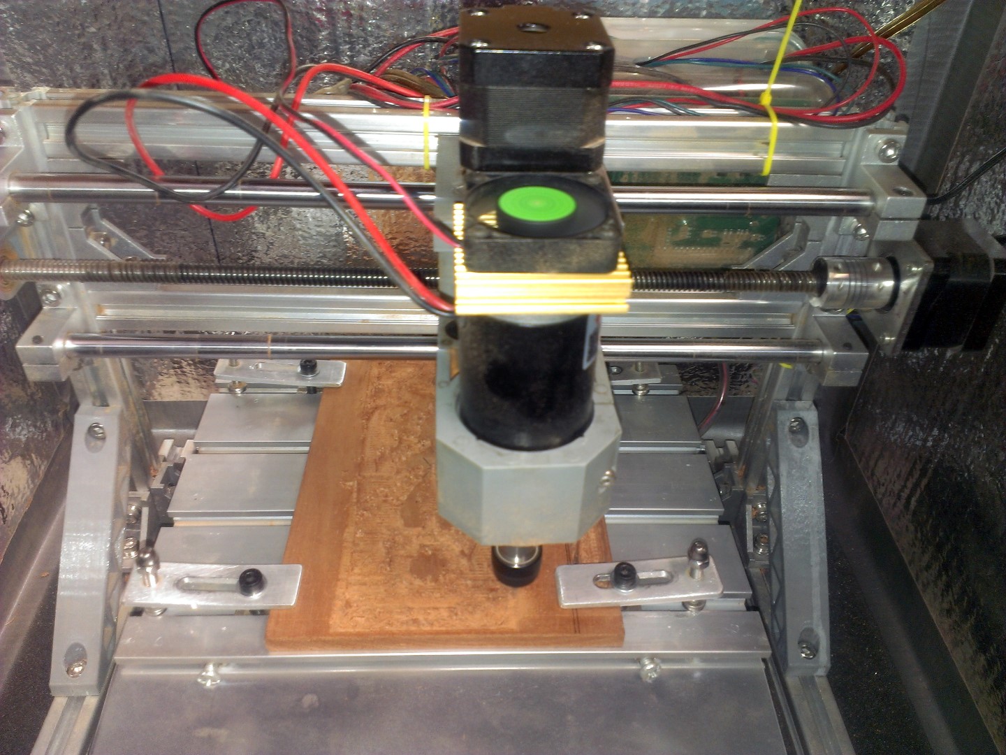 Gas писал(а):Я бы не стал на плату 36В подавать, хлипкая она какая-то, а вот на шпиндель запросто, но отдельно от платы.I_am_the_Lexx писал(а):Отсюда вывод, что добавить мощу шпинделю можно увеличив питание платы до 36В.Вот он у меня и не мог стартануть, всё пытался и никак............ Я сейчас поставил другой шпиндель 24В 150 Ватт, пришлось ему на крышу охлаждение приспособить, а то до 70 градусов грелсяI_am_the_Lexx писал(а):При старте мотора срабатывала защита БП и он отключался. Т.е. стартовый ток весьма приличный.