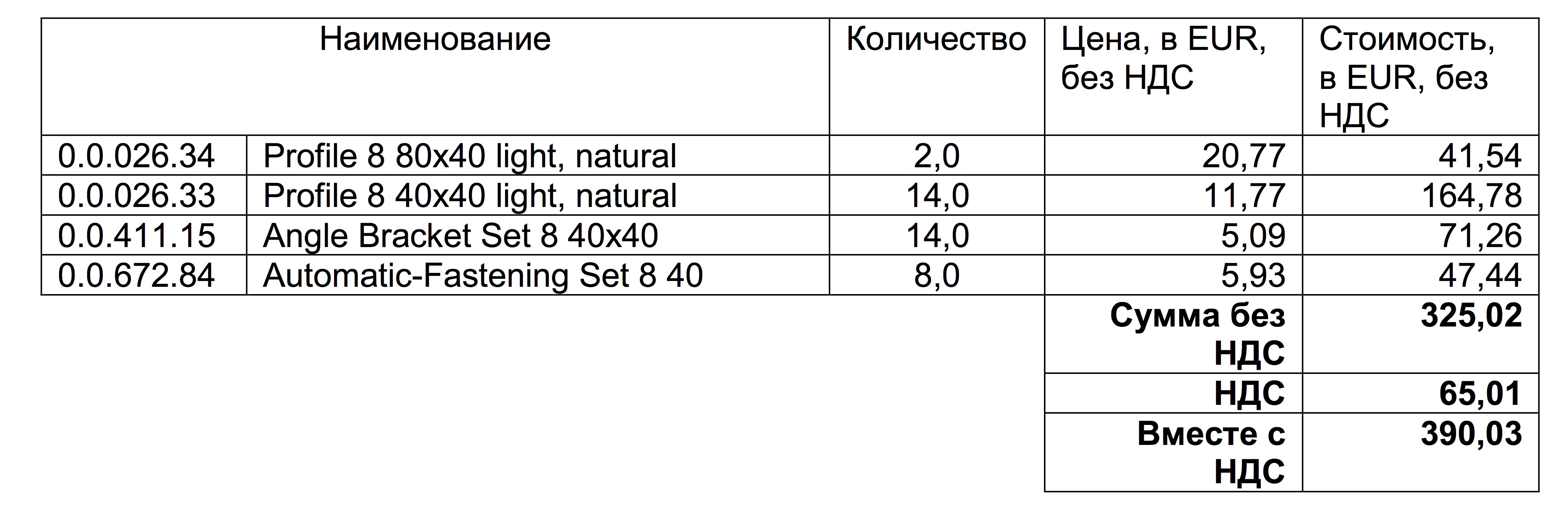 Ответил второй магазин. У них цена только профиля с порезкой, без крепежа, вышла в 185$, что уже становиться интересным :)