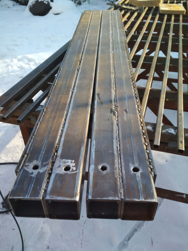Сейчас-то точно знаю как надо было варить, чтоб без этого. Надо было тыльными сторонами балки друг к другу притянуть по всей длине и обе одновременно варить. А не по одной.