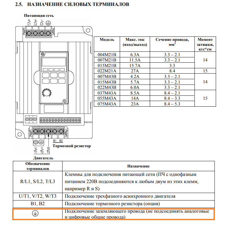 1. В мануале к частотнику есть требование: