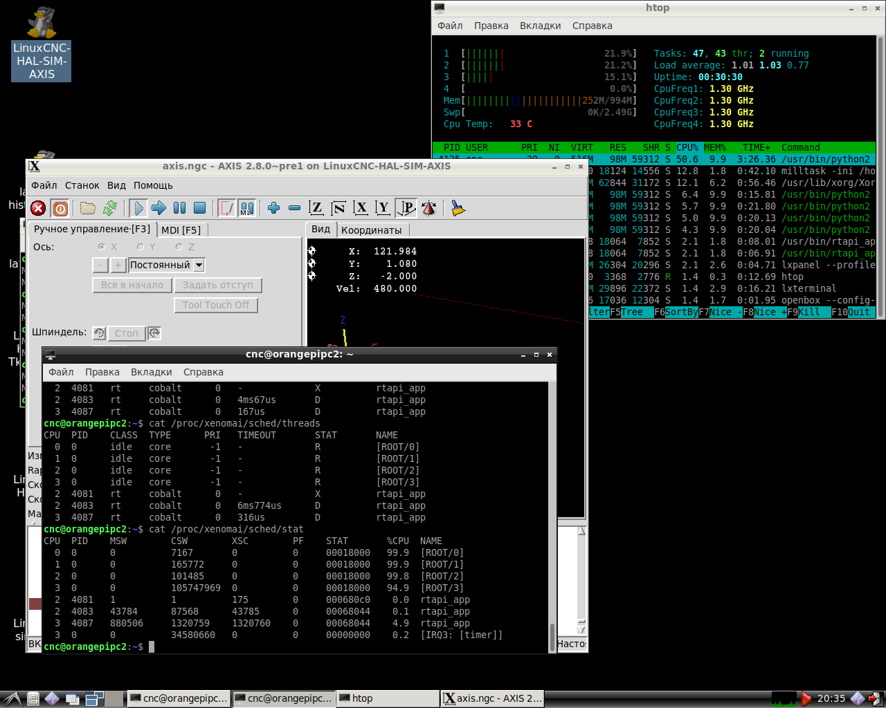 И результат зависит от того на каком ядре и в каком пространстве эта задача выполняется.MX_Master писал(а):LinuxCNC замеряет всё сам,