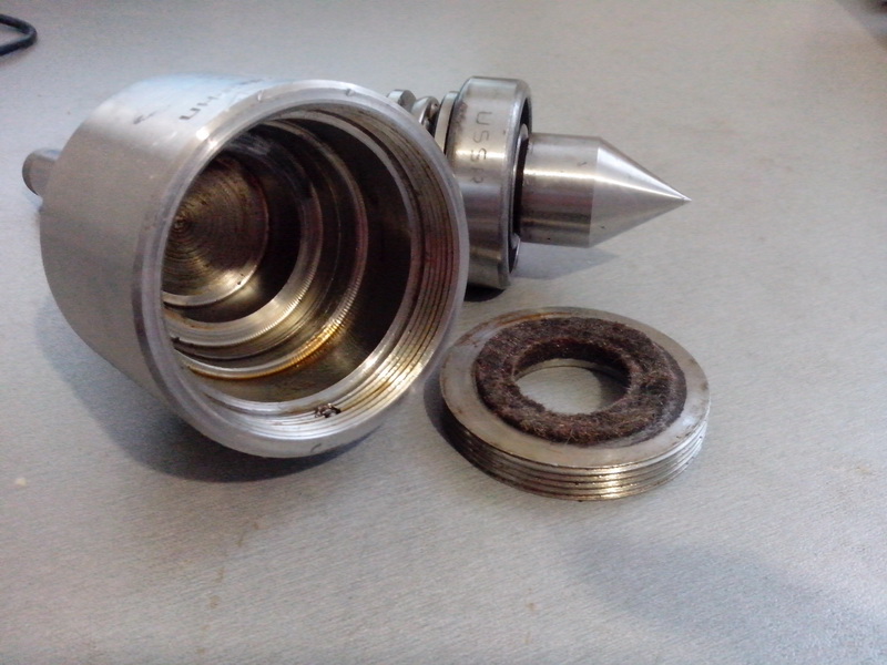 Вопрос в задней бабке. Сначала хотел найти бабку от маленького токарникика, обточить ее корпус, потом хотел найти только вращающийся центр от бабки мелкого размера (Конус морзе 1) тоже оказывается проблема. В итоге на рынке купил по цене подшипников вращающийся центр КМ4 в хорошем состоянии, нормальные не гудящие и не разбитые подшипники (2 радиальных, один упорный). Он конечно крайне избыточен но при его цене (обошелся 3дол) и отсутствии на данный момент других вариантов думаю сгодится. Запас как говорится .... не жмет.