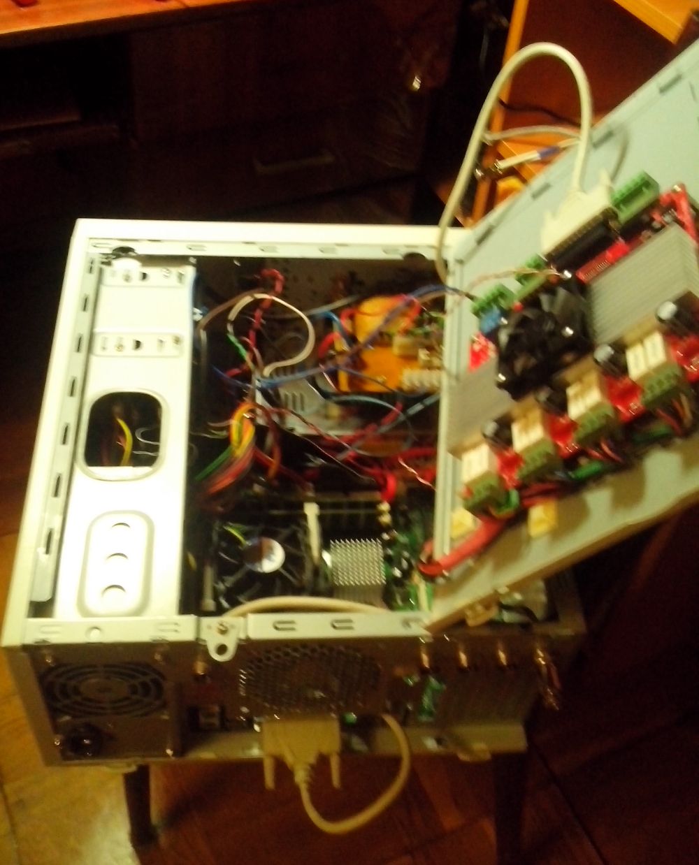 Компоновка нового контроллера, работает лучше самодельного , станок разогнался до 500-600мм на холостом ходу мне этого вполне хватит )))) и места на столе прибавилось все влезло в комп.