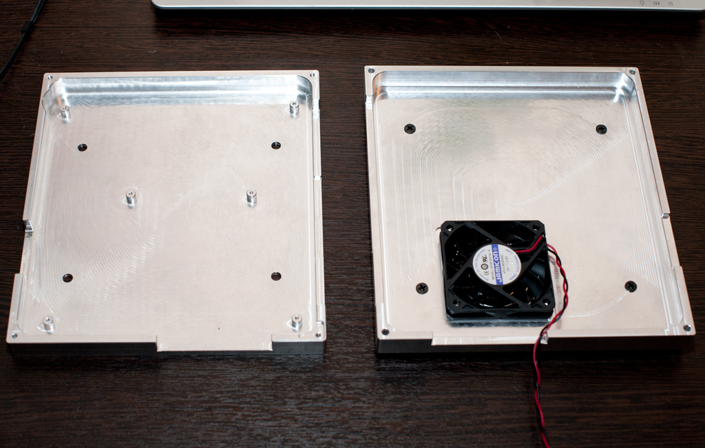 В продолжении темы ковыряния со своим станочком так сказать. Пару месяцев назад приехали мне кусочки дюралки от nanthony (за что ему огромное спасибище :good: ) - вот наконец-то кусочки эти воплотились в итоговое изделие - корпус для нет-топа (основание и крышка), который я установлю уже в стойку (ноут-бук вернется в семейное пользование, а рулить буду с сенсорного монитора, который буквально на днях наконец-то приехал):