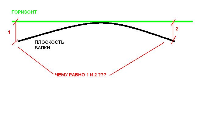 Вывод в целом понятен, балка дугой как на картинке ниже, но как понять чему равны расстояния 1 и 2? Как править/срезать возвышенность в центре балки, вернее от куда отмерять или как правильно сказать? Как уже говорил выше линейка только ШД 630 она меньше чем плоскость балки.