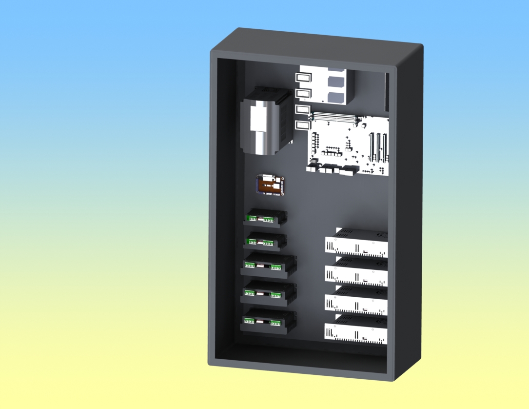 Пока в поисках, где обработать балки по X, делаю компоновку шкафа. На сегодня такая картина. Еще правда не все.