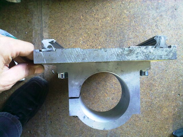 Сегодня досверлил отверстия в корпусе под гайку ШВП. Также Прикрепил одну направляющую на балку оси Y.