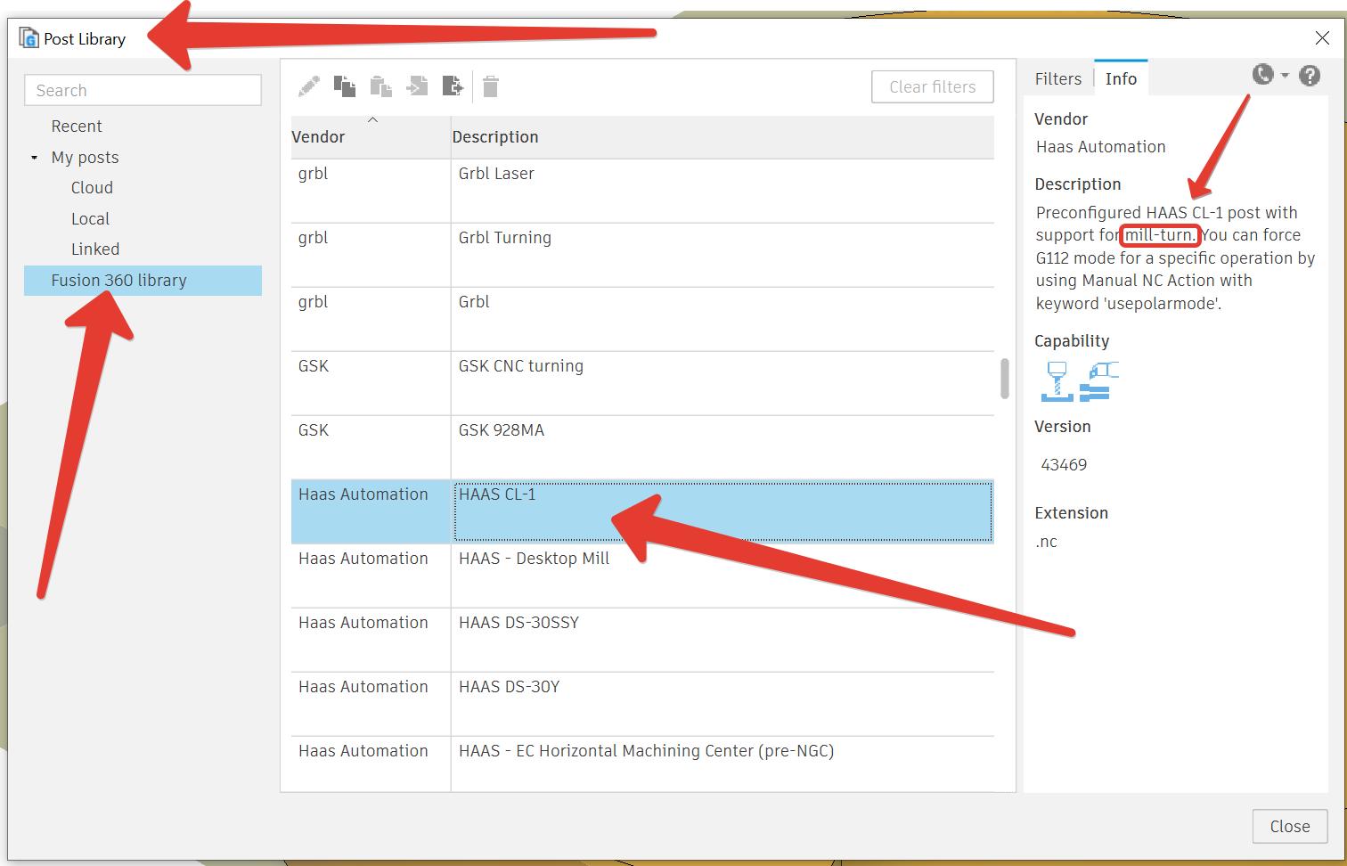 Не надо ничего переустанавливать, они есть, вы просто не там ищете. Без разницы, какой там станок выбран, поставьте просто generic 3-axis mill, главное пост потом токарно-фрезерный выберите, например haas cl-10. Если нет постов кроме вашего mach3, смотрите папку с постами, видимо поменяна со стандартной.