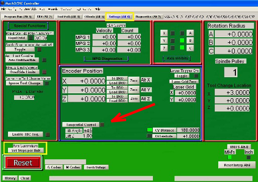 Программу я писал как для обычной фрезы. Только вот постпроцессор G-cod выбирал, он остался от попыток управления флюгерным ножом, с американского сайта. Я думаю, что и обычный подойдет) тот просто стоял уже и я забыл поменять) Mach сам поворачивает нож по траектории.