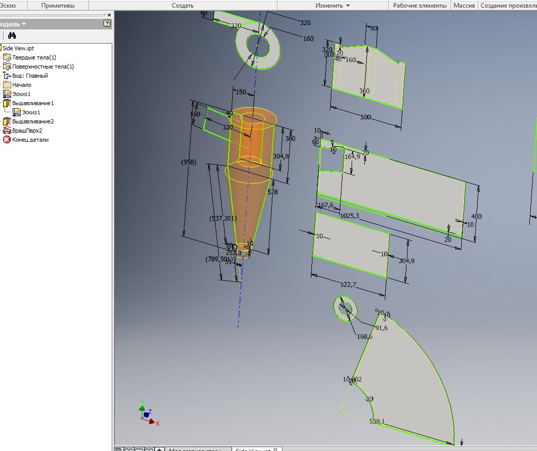 и приближаю момент изготовления пробного нового циклона.